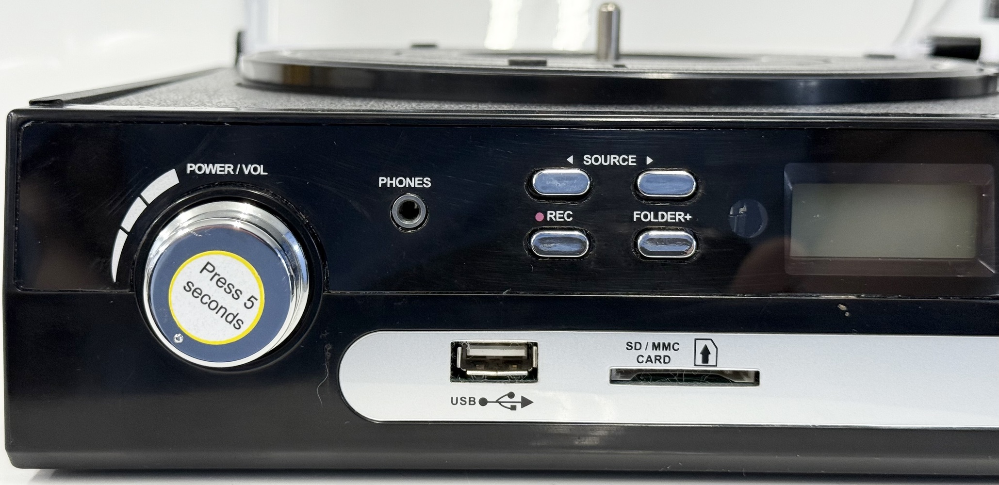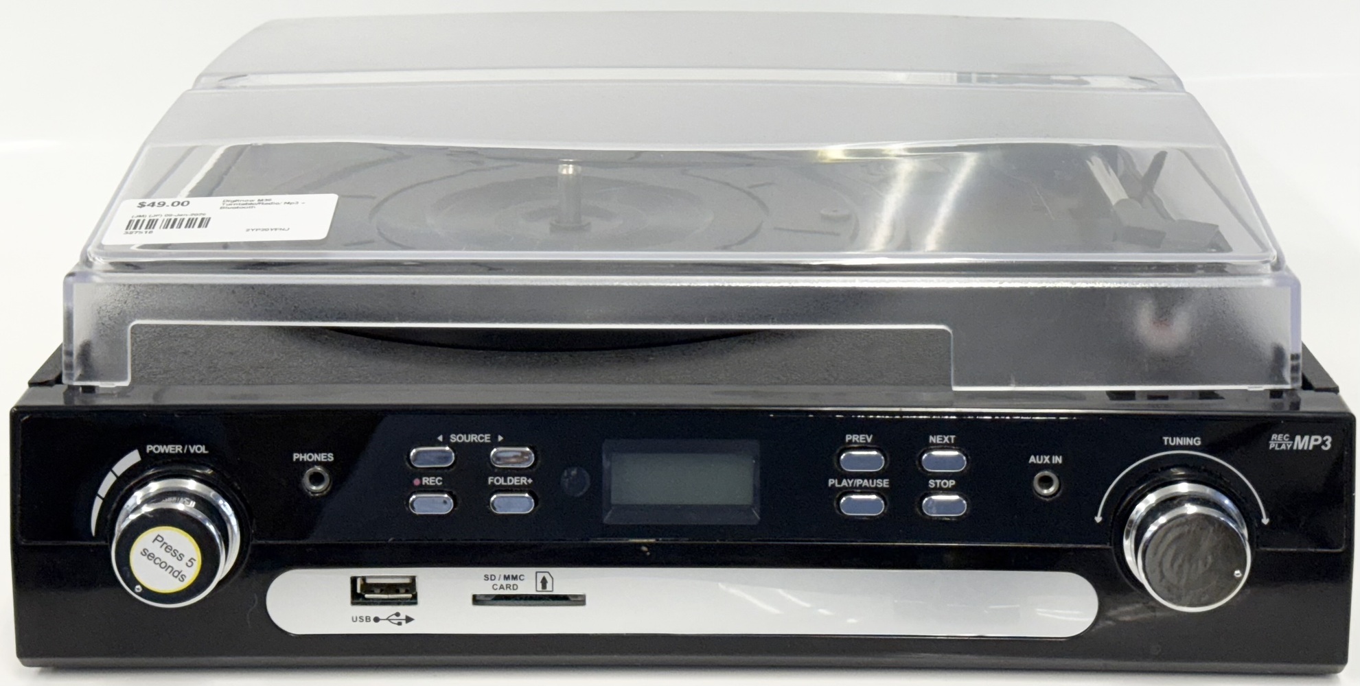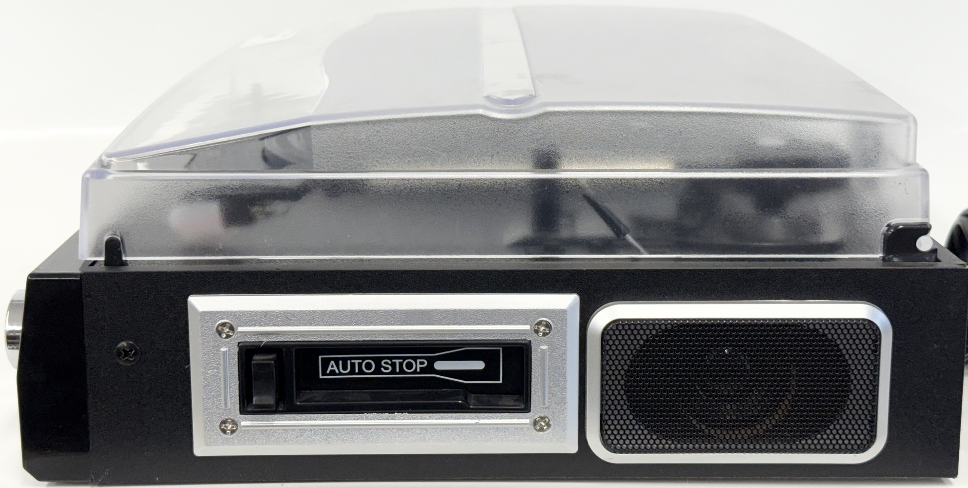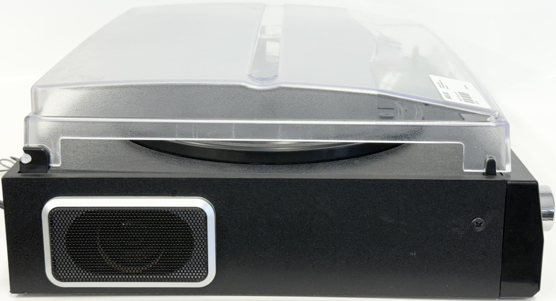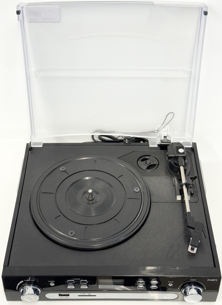 Features built in speakers and a dust cover