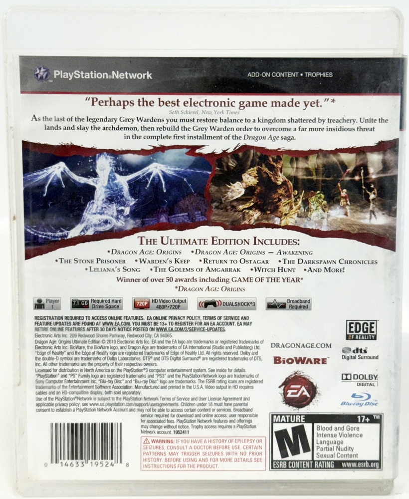 Dragon Age Origins Ultimate Edition for PS3 Playstation 3 Console *NO MANUAL*