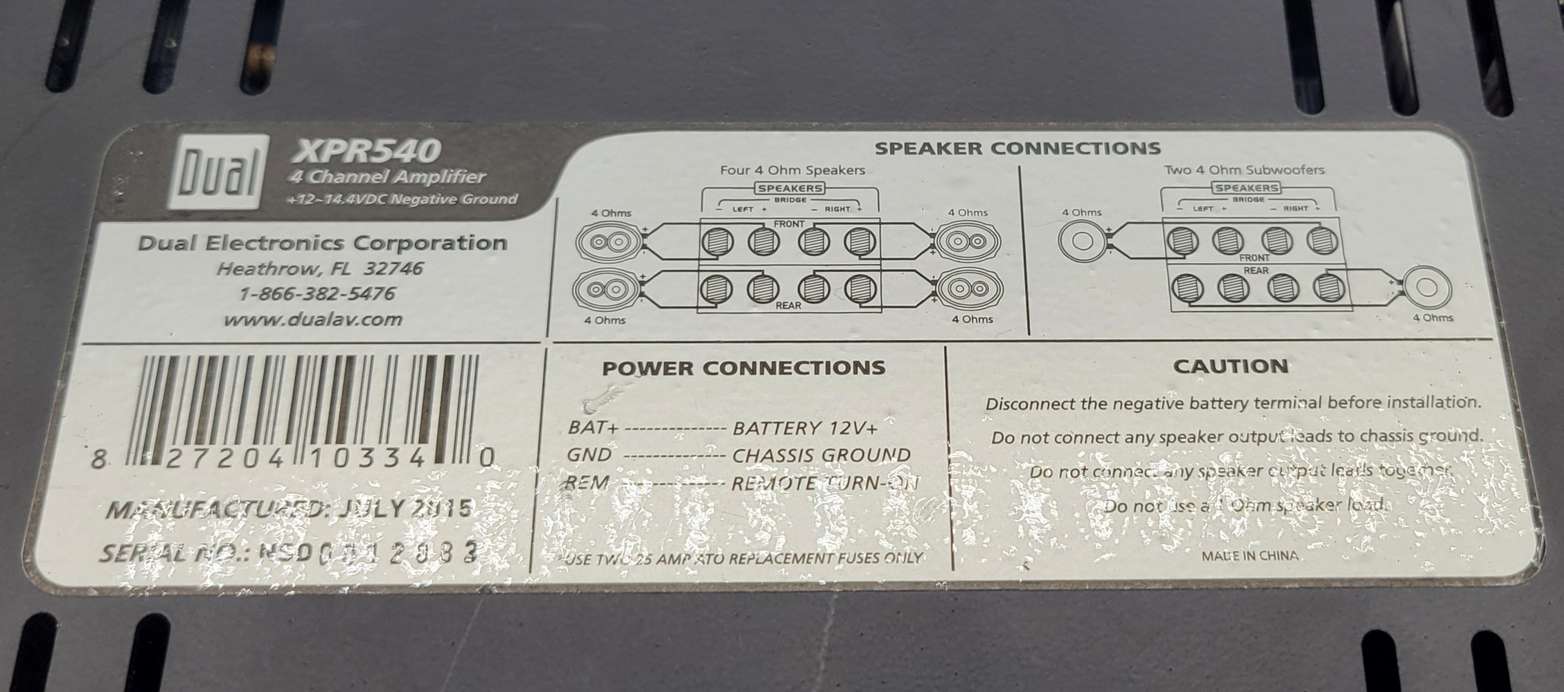 Unleash powerful sound with the Dual XPR540, a 4-channel car amplifier built for crisp clarity and booming bass. Elevate your ride’s audio experience, delivering clean, dynamic power that turns every drive into a concert. Compact, reliable, and hardcore—gear up for sound that moves you.