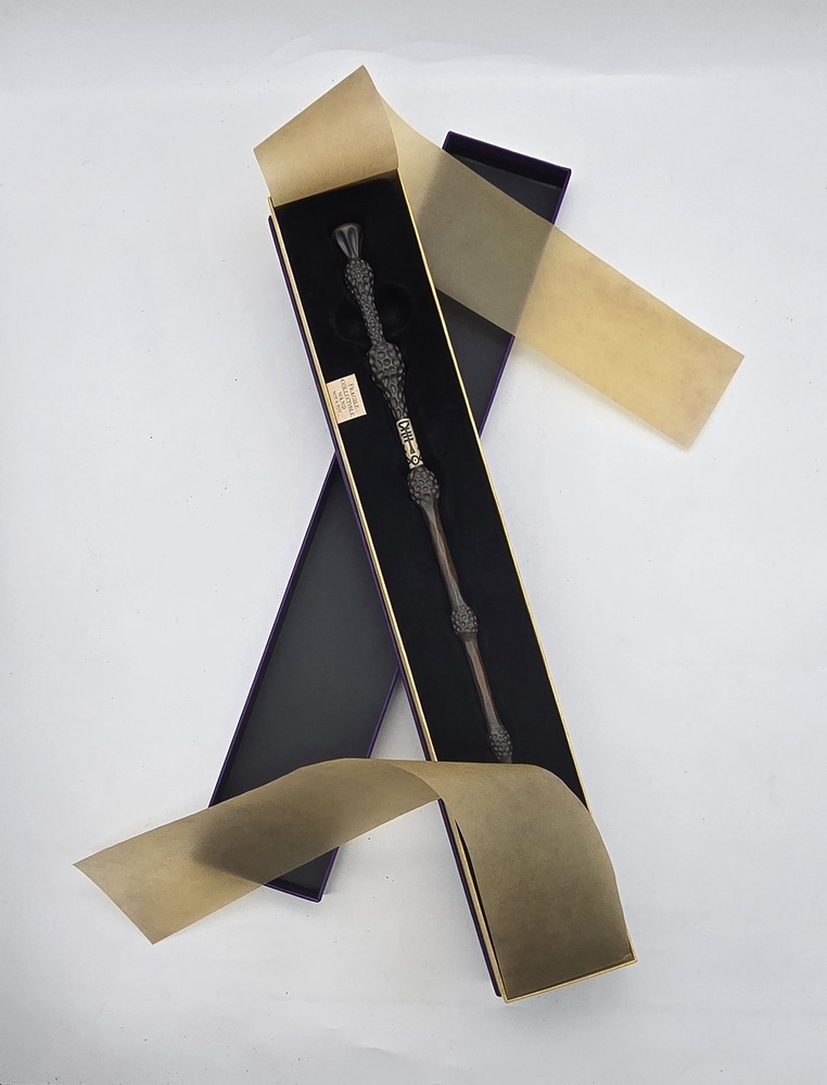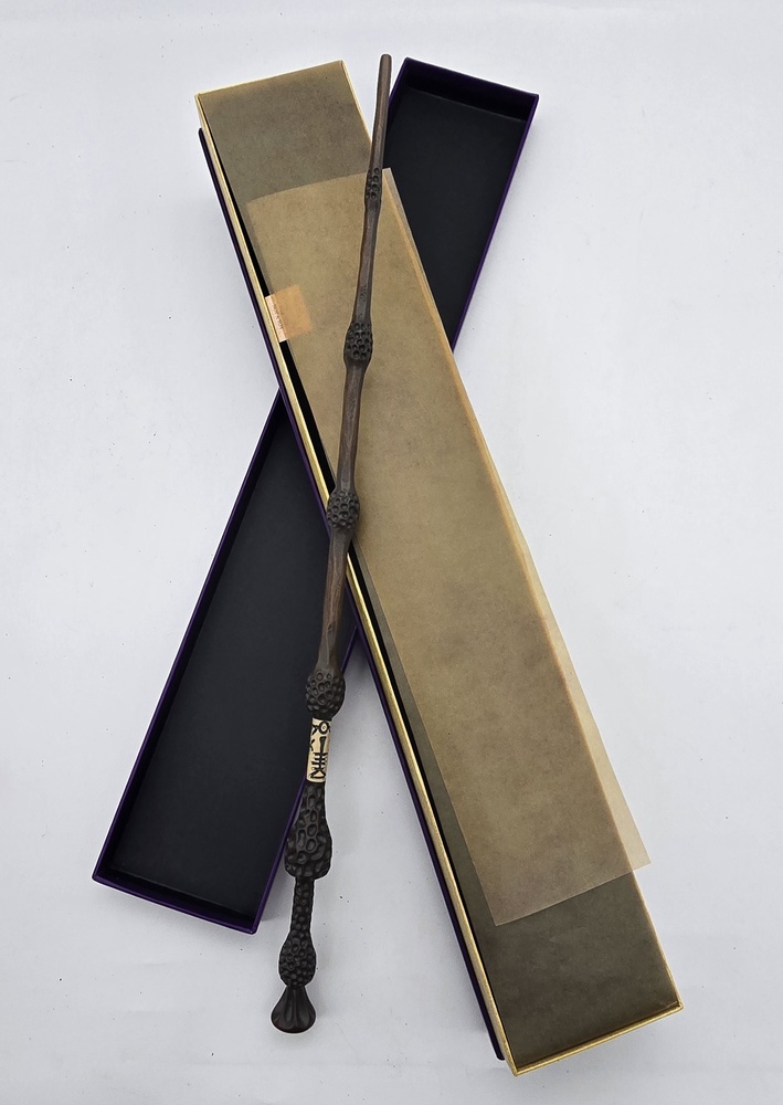 The Elder Wand, Dumbledore's arcane ally, pulsing with ancient magic. Intricate symbols etched in, emanating an enigmatic allure. A fabled relic, whispering tales of power and history, waiting patiently for its rightful wizard. Unyielding, its loyalty unquestioning, a beacon of hope concealed within Albus Dumbledore's robed sleeve.