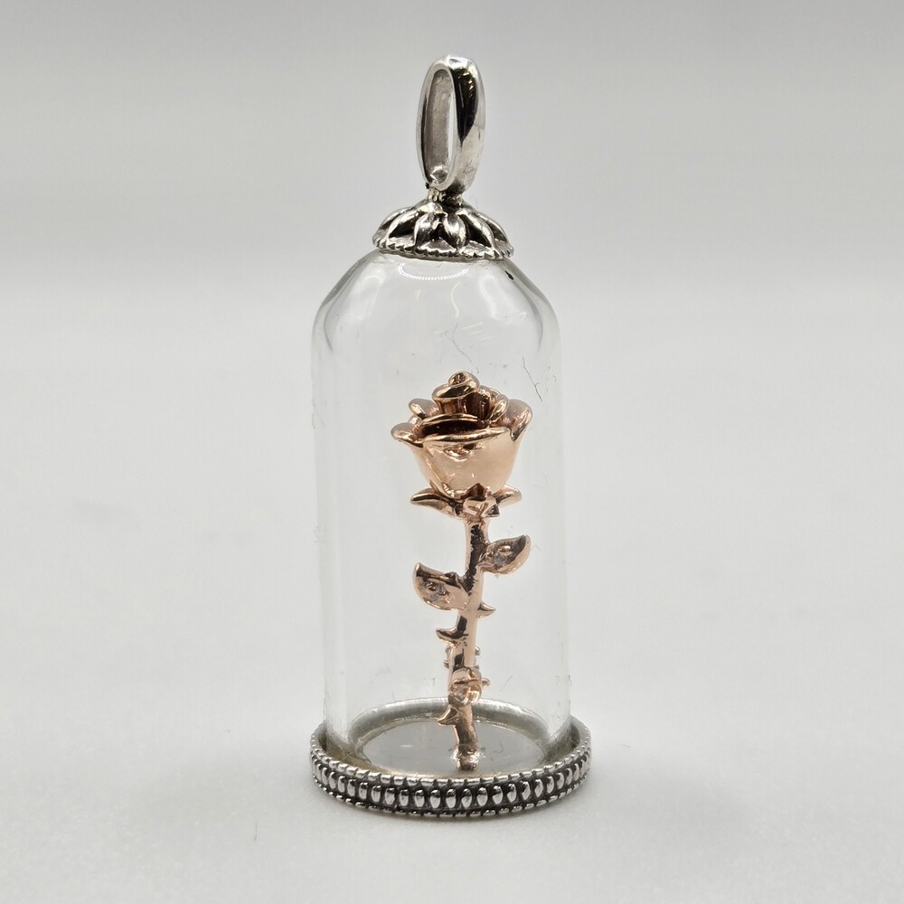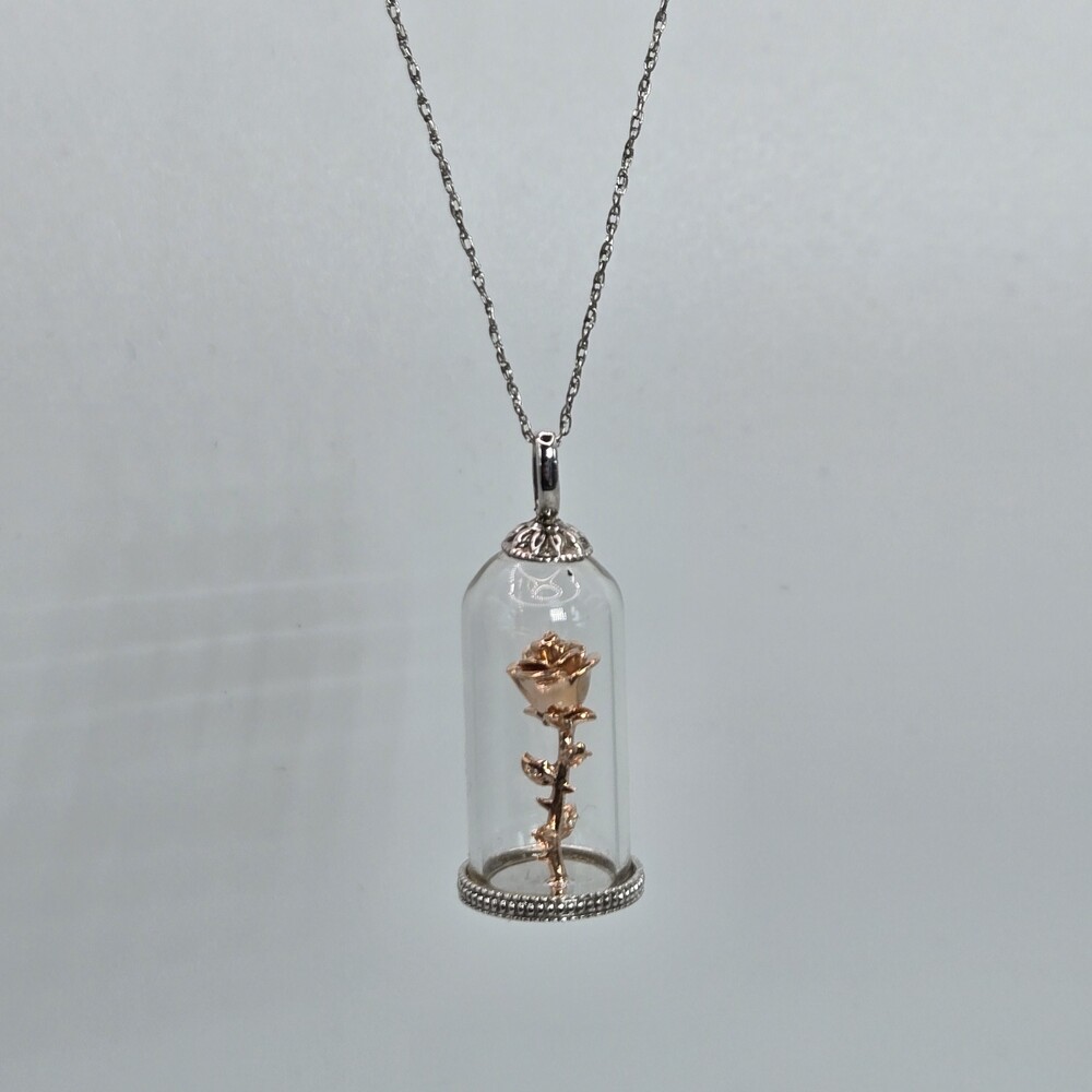 From the Enchanted Disney Fine Jewellery Collection inspired by Belle, this diamond accent rose in glass dome pendant is an unforgettable magical look