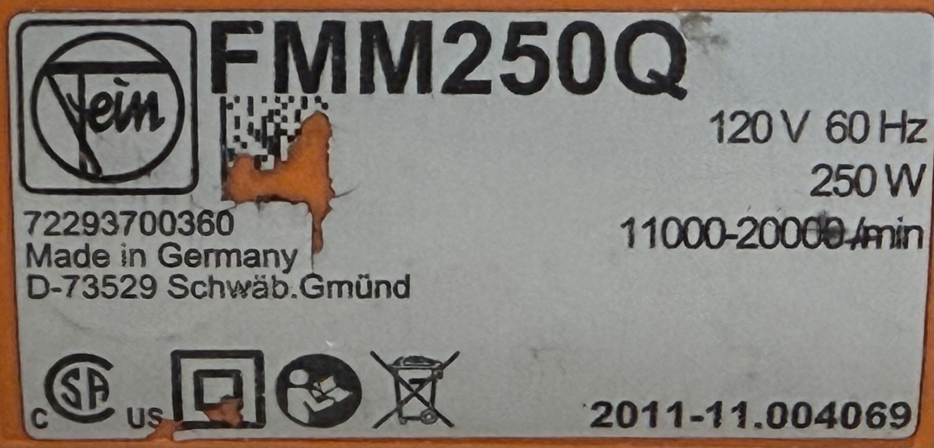 Fein Model FMM250Q Corded Variable Oscillating Multi Tool with Attachments