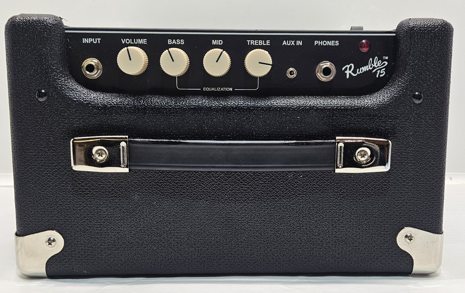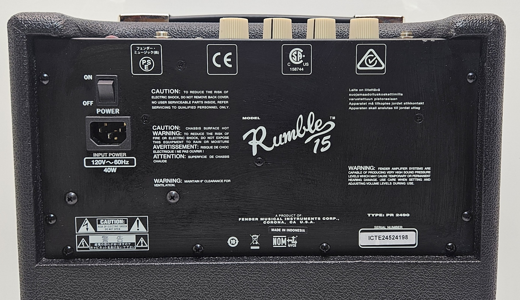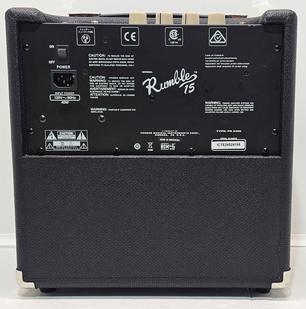 Dont let its diminutive stature fool you Rumble 15 uses every last electron of its 15 watts to pump out a surprisingly rich and balanced sound. Whether its for an acoustic gig or backstage rehearsal, Rumble 15 delivers legendary Fender tone in a remarkably portable package.