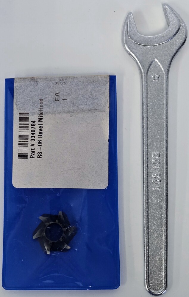 This listing includes the bevel mite, 1 mite head, and a wrench.