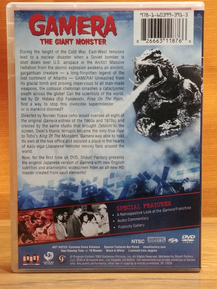 This preowned copy of Gamera is in lightly played condition and free of radiation. The case and printed material are in fine damage free condition. The disc is very clean and free from marks or scratches. Please view all pictures as they are part of the description and ask any questions before buying. We are accurate as possible when listing to avoid any disappointment and are happy to provide any additional images or information requested