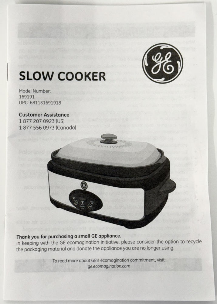 GE General Electric Model 169191 Slow Cooker/Crock Pot with Lid