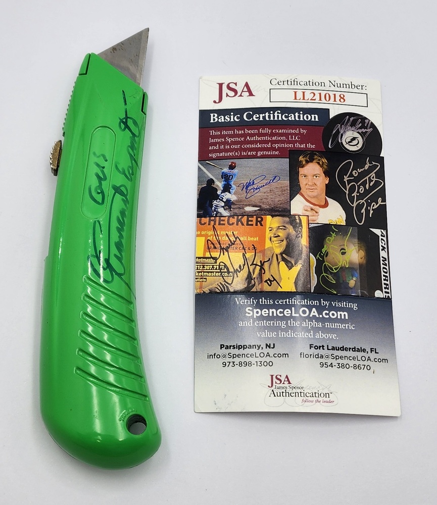 Capture the chilling legacy of Breaking Bad's 'Gus' with this rare keepsake! An authentic Giancarlo Esposito autographed box cutter, emboldened with villainous spirit. Strictly JSA certified, an iconic testament to unforgettable TV drama. Limited edition.