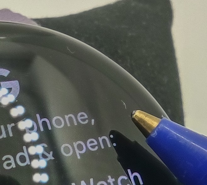 This watch has some light scratches to the top and bottom of the screen, please see photos.