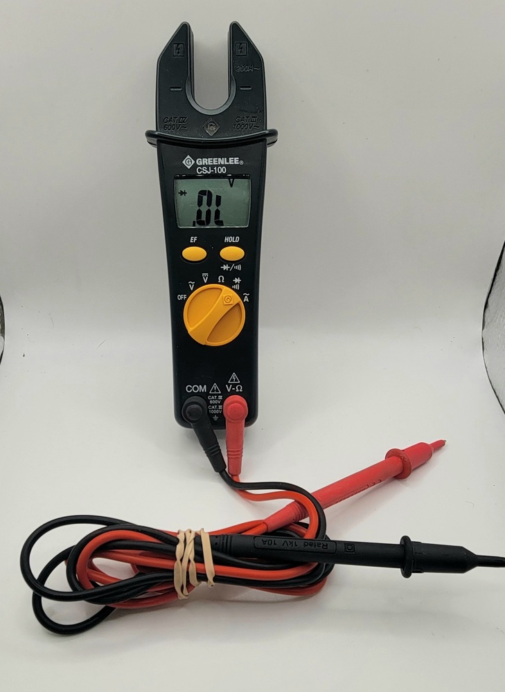 The clamp meter in this listing is in good pre-owned condition and in good working order. Leads are included.