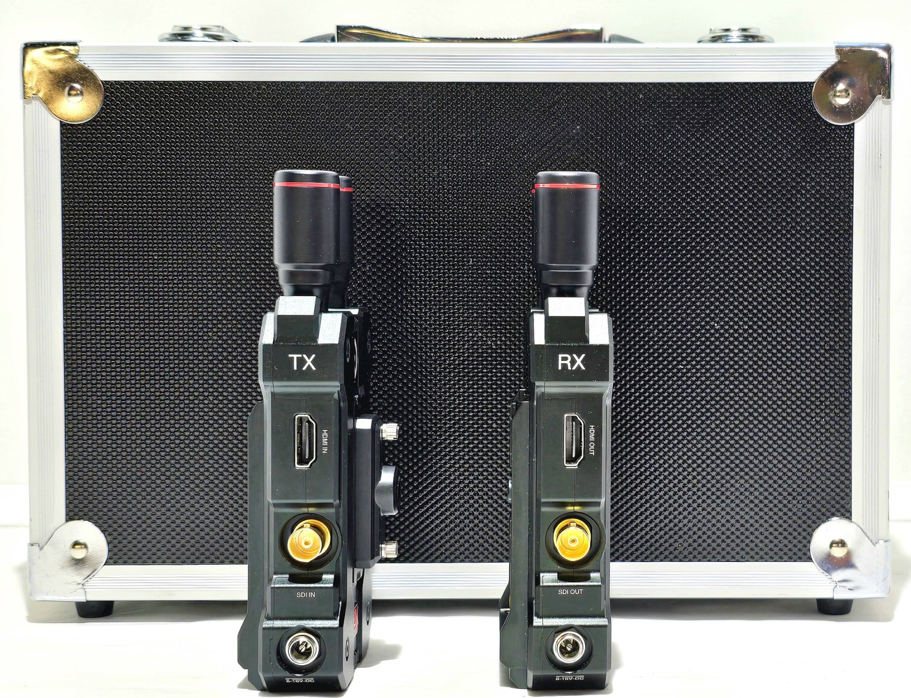 System Appearance: transmitter, receiver and power supply are in pristine shape. Case has light scuffing/wear from storage/handling.