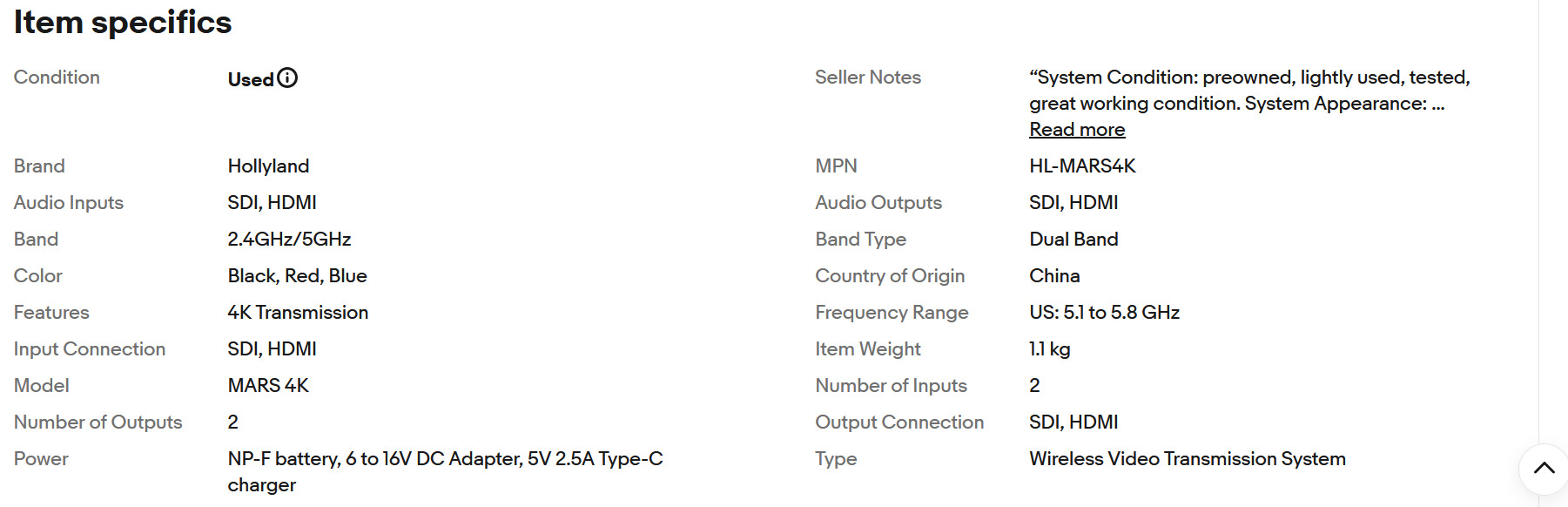 What's Included: Hollyland Mars 4K  transmitter, receiver, power supply and case. No batteries or USB charger included.
