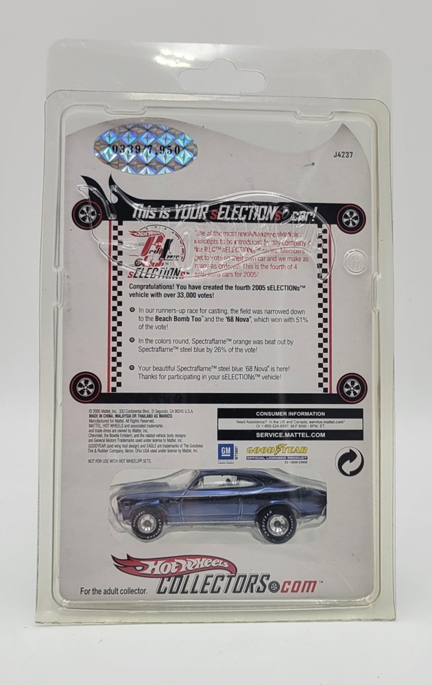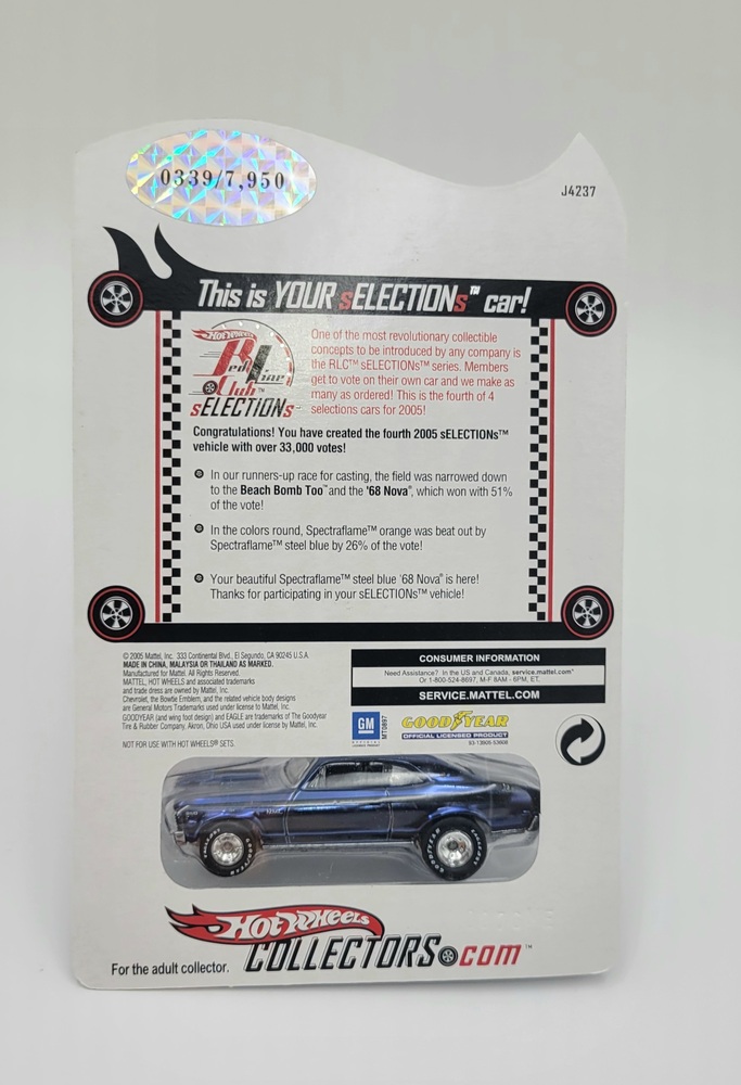 Get lost in the magic of nostalgia with this Red Line Club 2005 Selections Series '68 Nova from Hot Wheels. Number 0339 out of 7950 rare collectibles, this retro gem transports you back to the groovy sixties. Own a piece of automobile history with this miniature marvel.