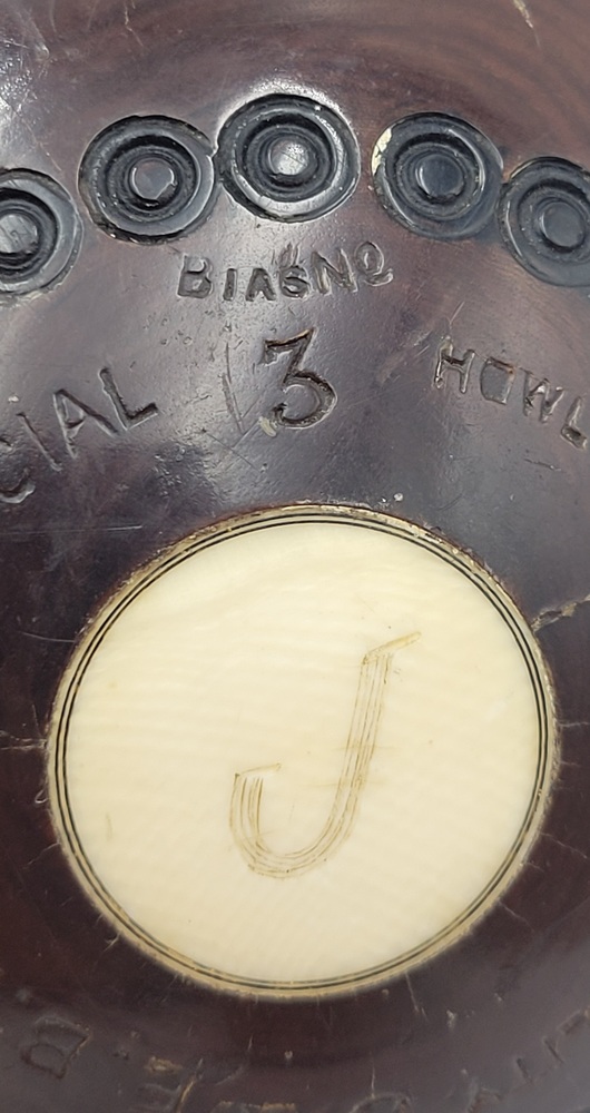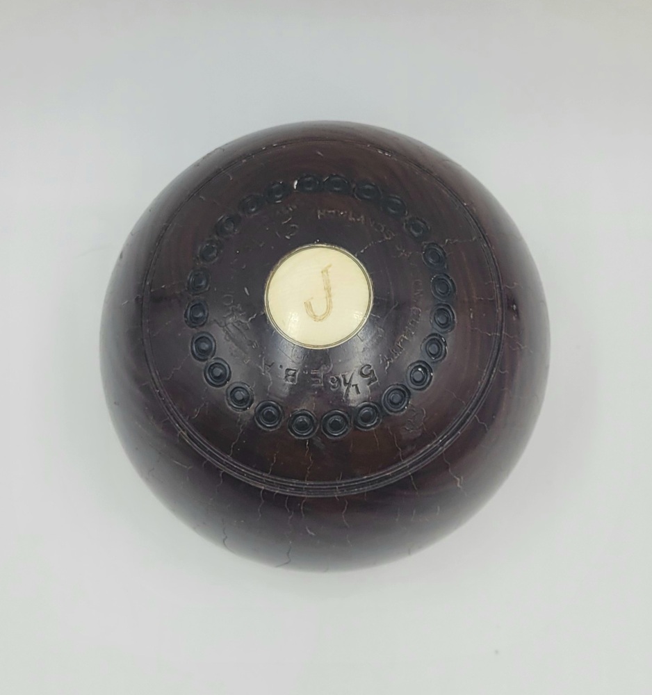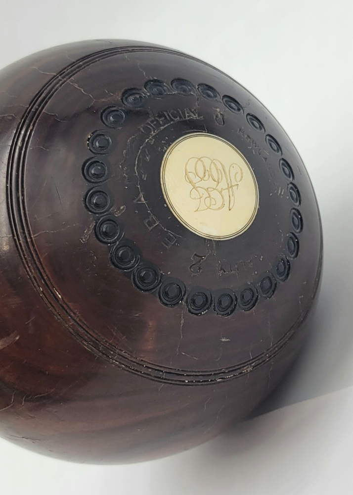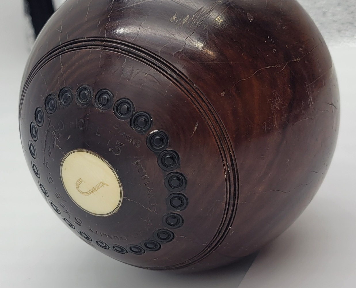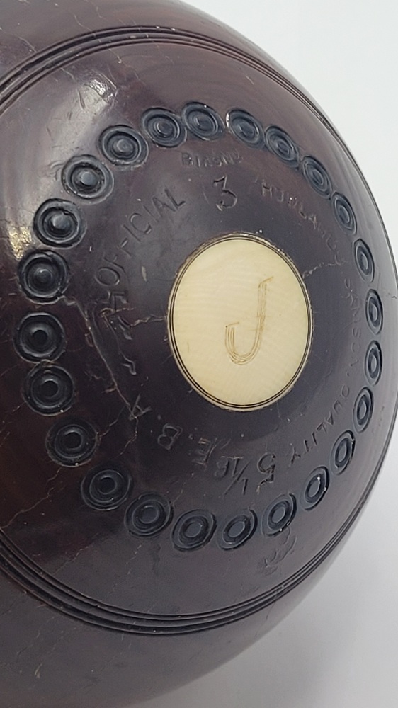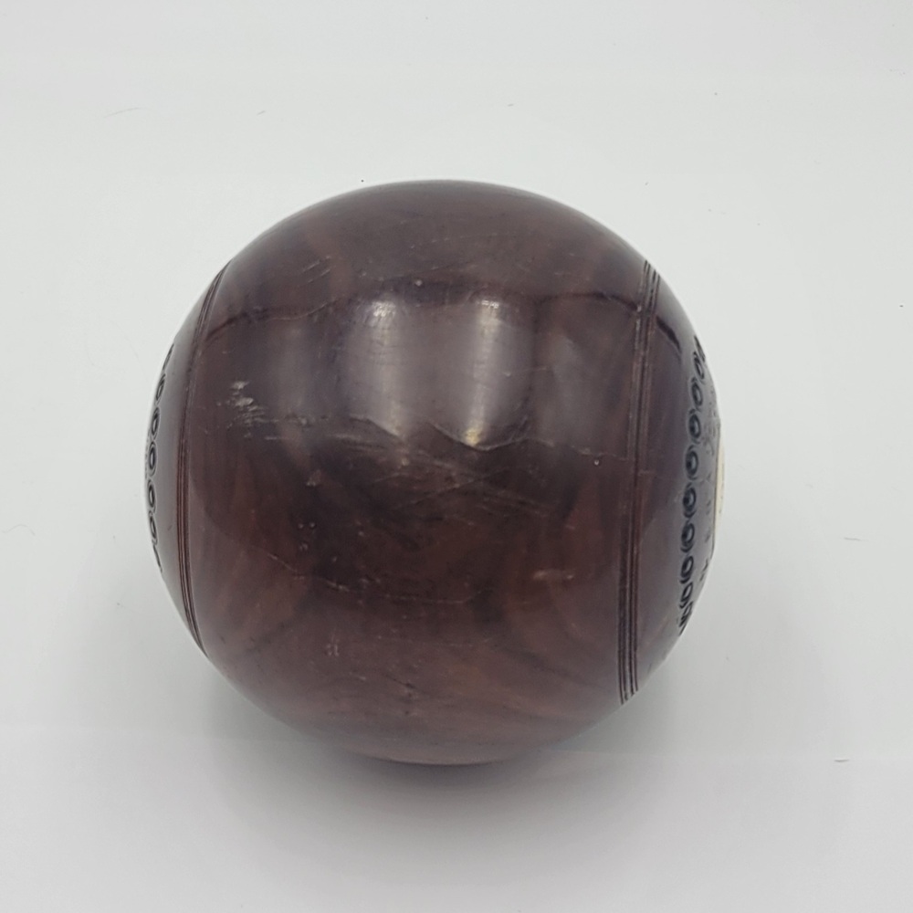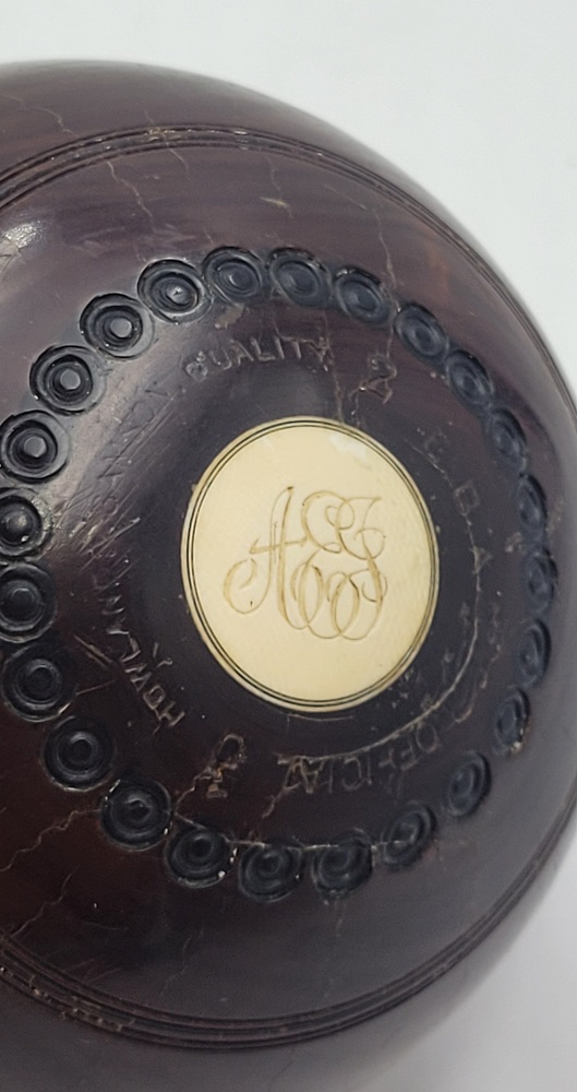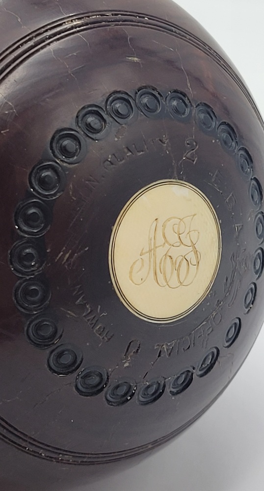 Behold the antique charm of Howlands and Samson, presenting the immaculate E.B.A. Official No. 3 - a vintage jewel of lawn gaming. Measuring 5 1/16", this monogrammed wooden bowling ball is a beautiful relic from a bygone era, steeping each game in nostalgic finesse. Uncover the timeless joy of outdoor leisure with this limited treasure.