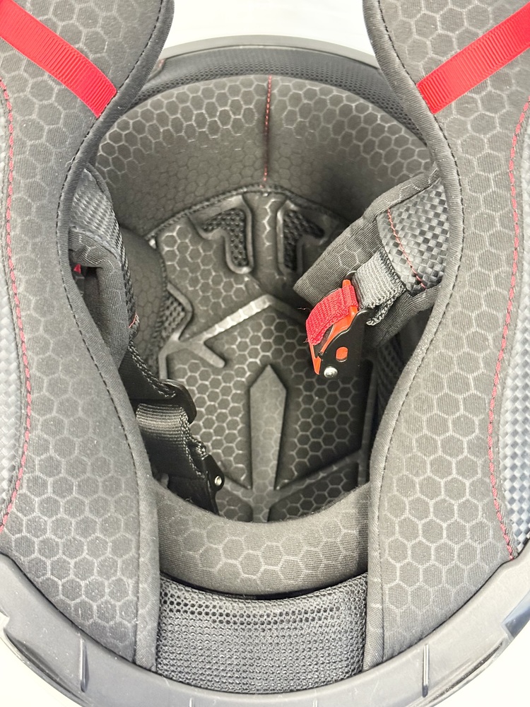 This helmet is in great condition with no dents or scratches, and still has the manufacturer plastic film cover on the face shield.
