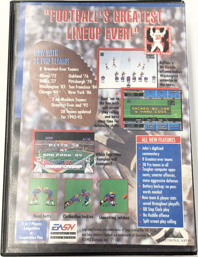 John Madden Football '93 for Sega Genesis Console *COMPLETE*