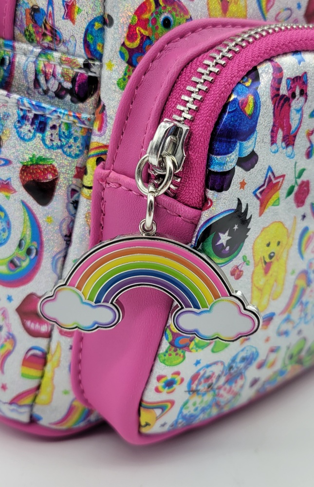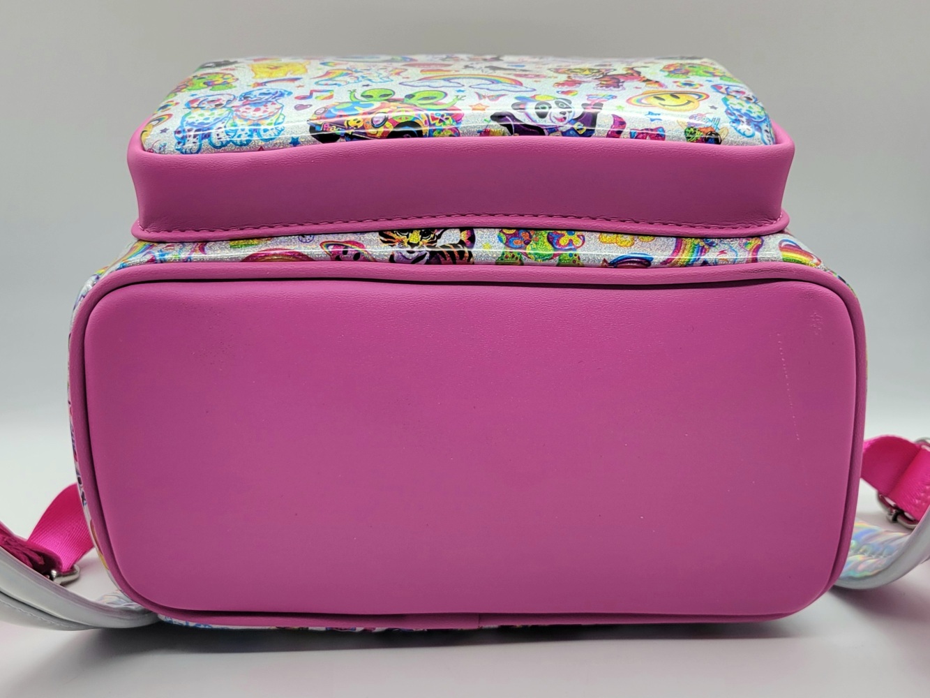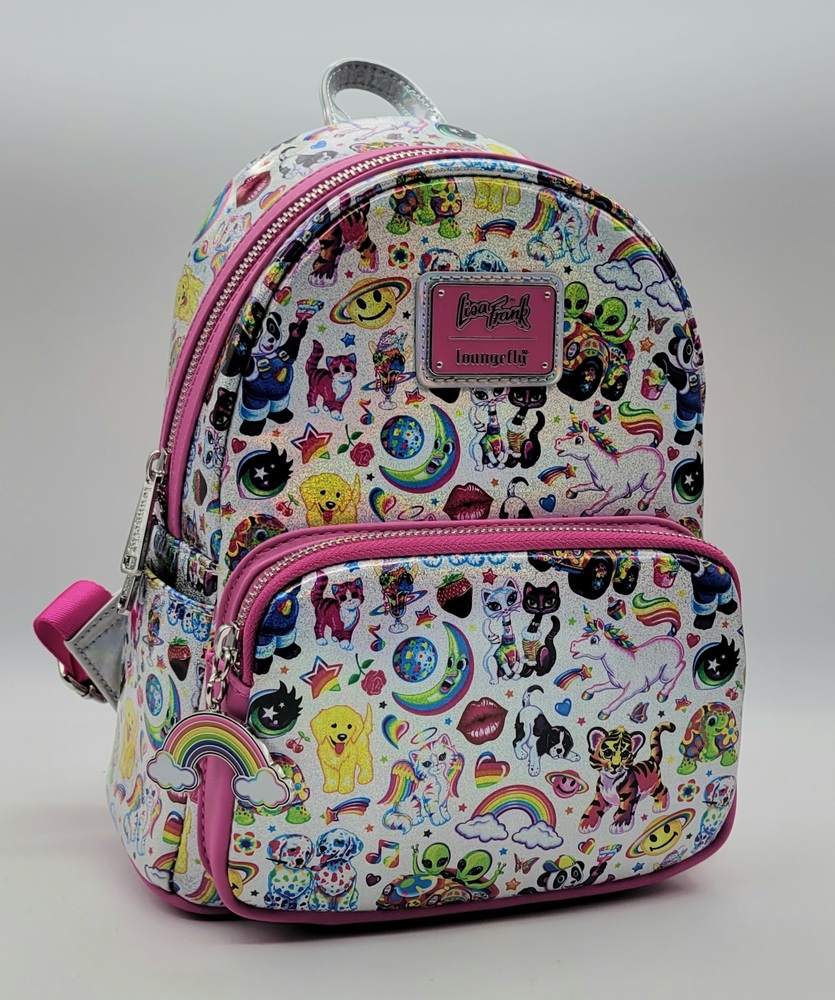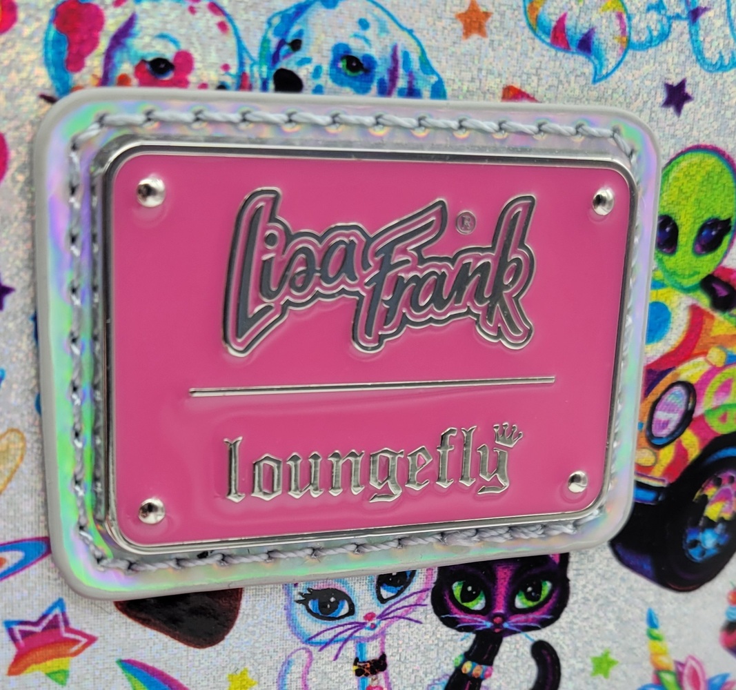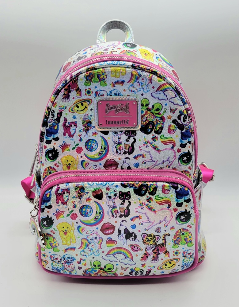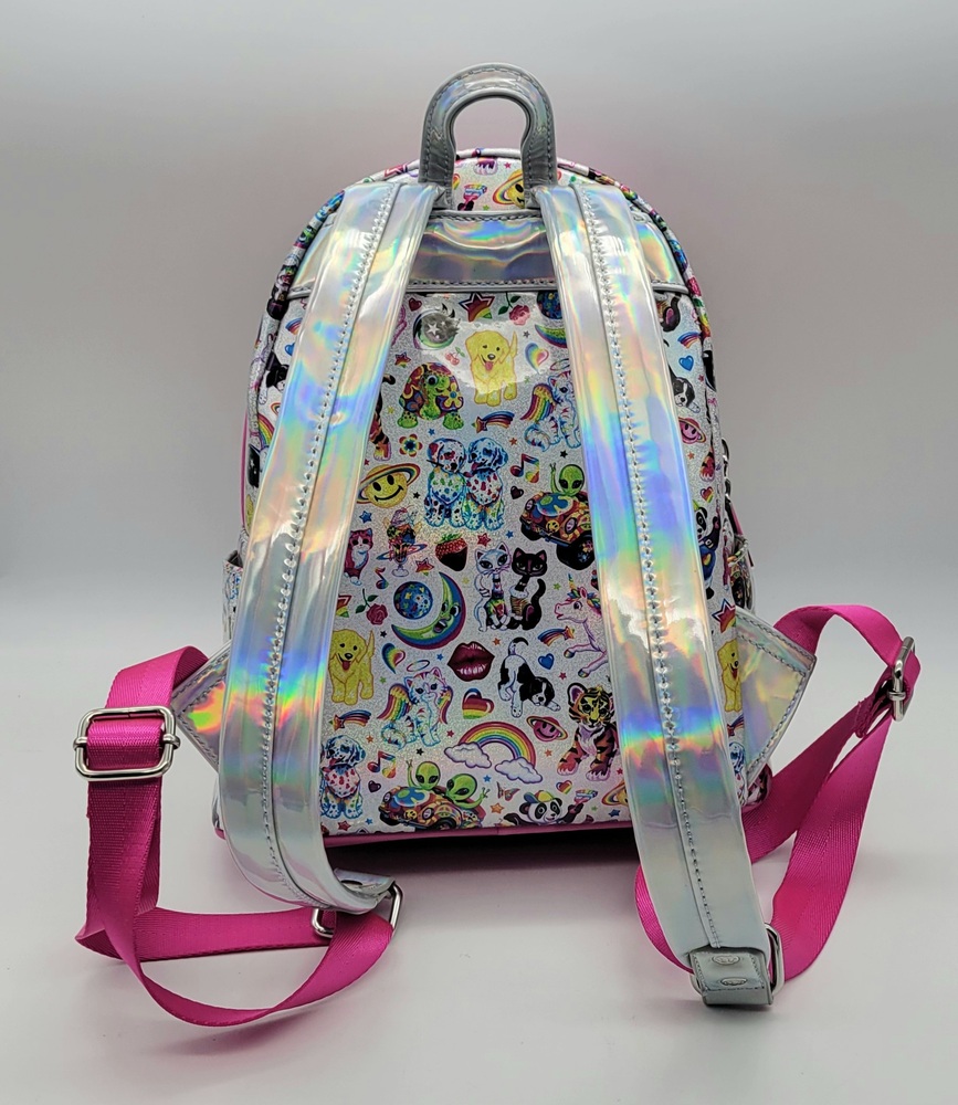 Unleash the '90s kid in you with this nearly untouched Loungefly Lisa Frank Iridescent Sticker Mini Backpack! Bursting with nostalgic rainbows, frolicking dolphins, and glimmering stars. Limited supply available. Now it's your turn to carry the magic. Remember, childhood never looked so shiny!