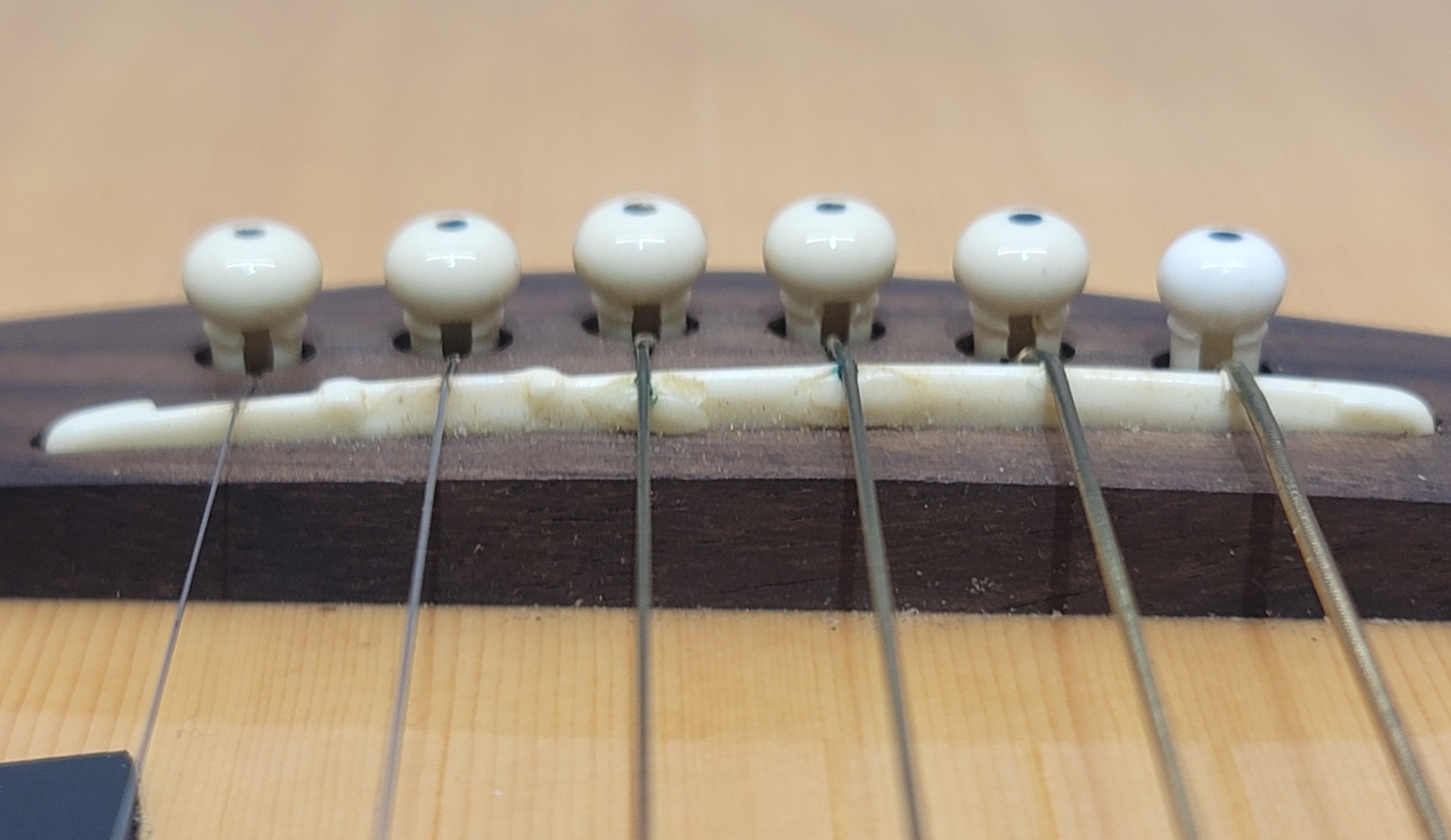 As well as the pegs are not pushed in fully. We know most musicians would want to restring their new guitar with their preferred string brand a gauge so have not restrung the guitar