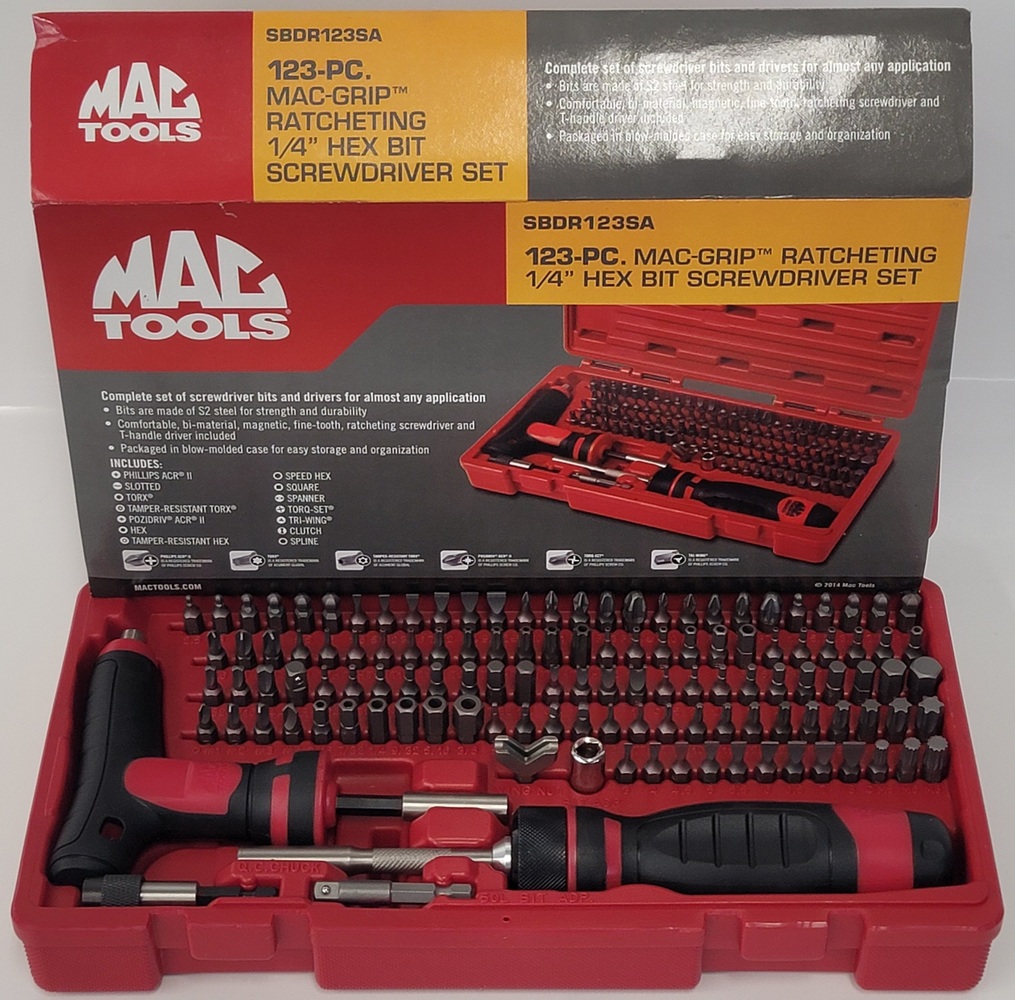 MAC TOOLS 123-PC Mac-Grip Ratcheting 1/4-in Hext Bit Screwdriver Set
