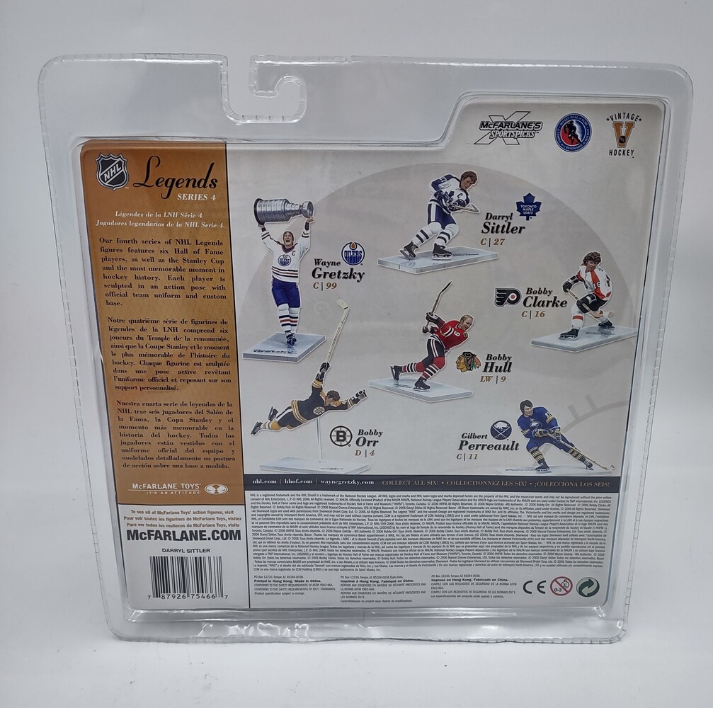 Sittler is remembered in Toronto as perhaps the finest player to ever wear the Maple Leafs uniform! This sealed McFarlane's figure comes from the 4th Legends series.