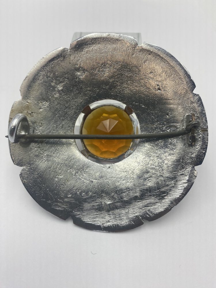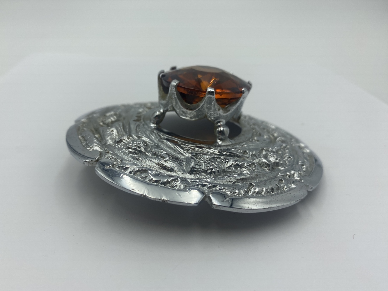 Summon the spirit of a Celtic warrior with this Amber Celtic Brooch Cloak Pin. This silver-toned emblem, reminiscent of historic war memorabilia, is an emblem of valor and legacy. Adorn your cloak with this timeless piece reminiscent of a legacy steeped in courage.