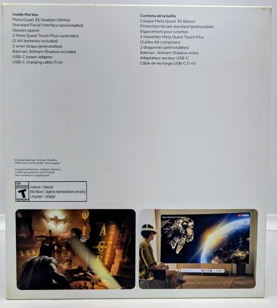 Included: Meta Quest 3S headset, Left & Right controllers with wrist straps