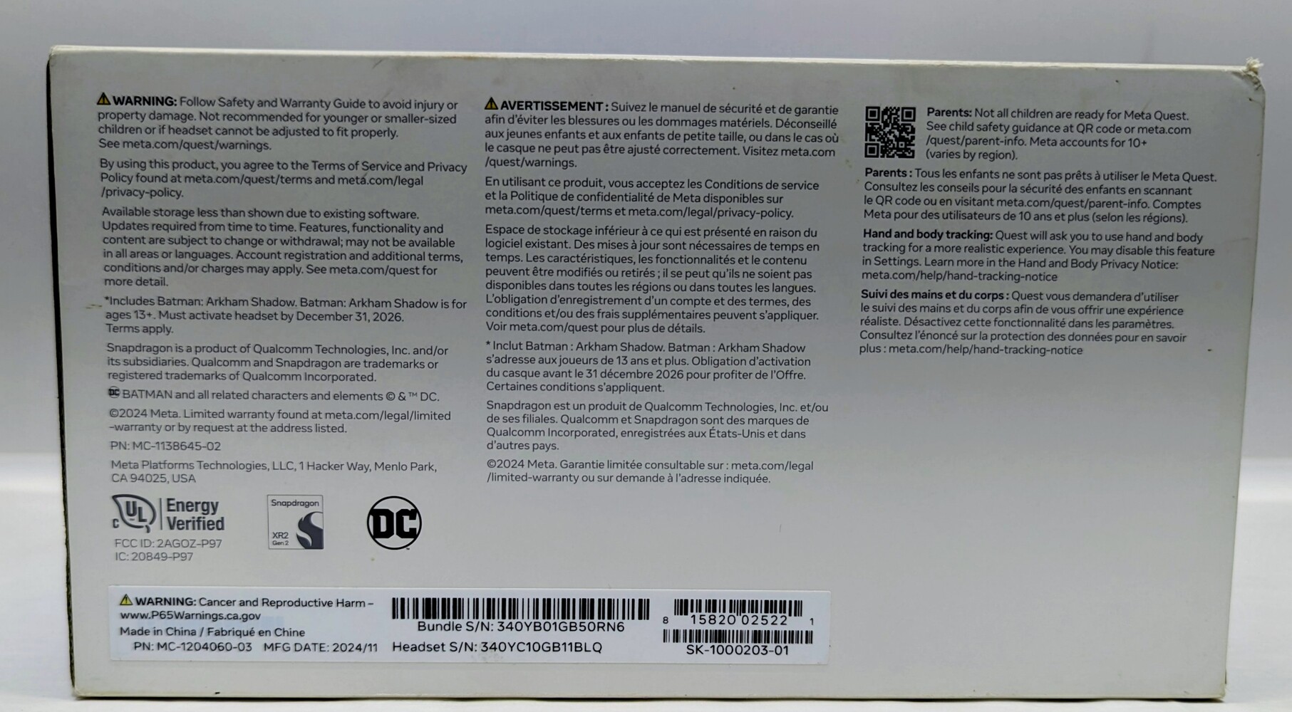 **PLEASE NOTE This headset has been factory reset so there is NO Batman: Arkham Shadow included. The packaging does have some damage and there are minor scuffs on the headset & controllers but it is otherwise in good physical condition. Please see photo and details.**