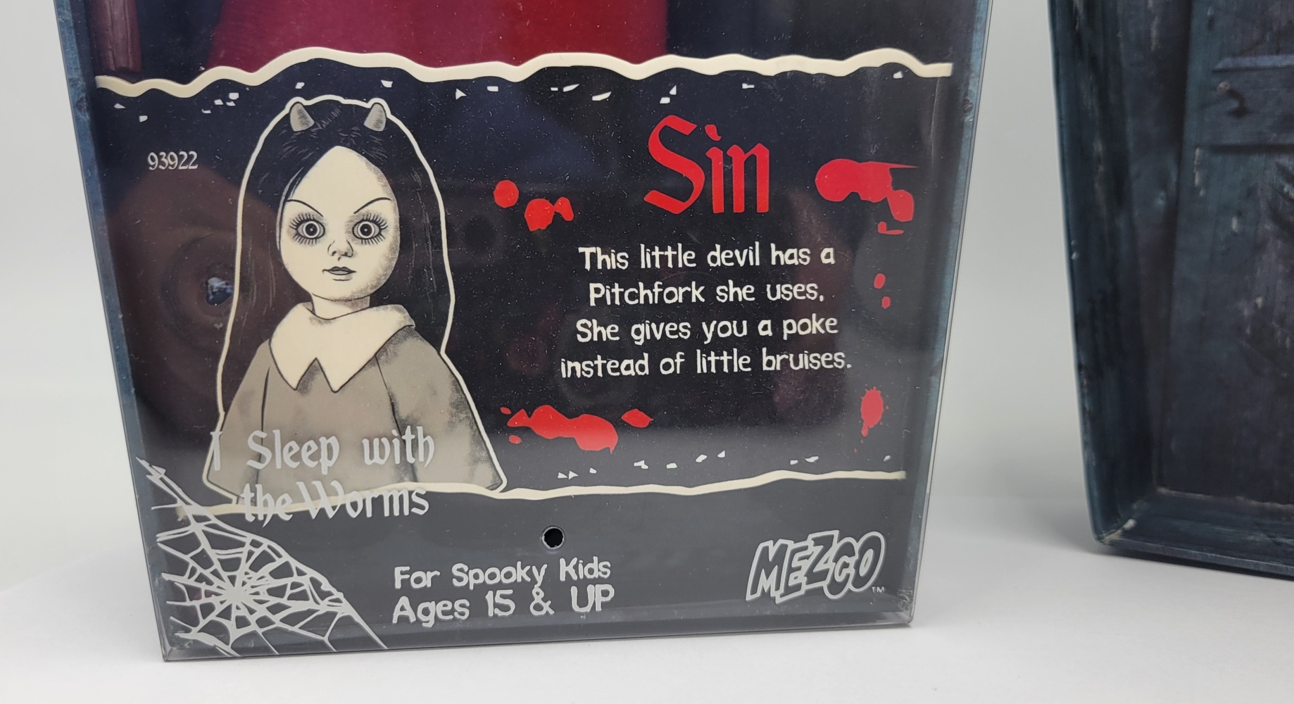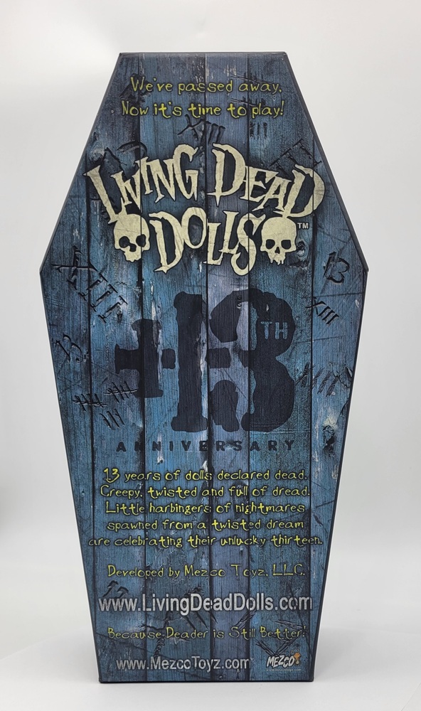 Celebrate the macabre with Mezco's 13th Anniversary Sin Doll from the Living Dead series. Limited-edition and ghoulishly exquisite, this collectable is the embodiment of dark enchantment, capturing the allure of the eternal night in her chilling gaze. A chilling addition to any terrifier's treasury.