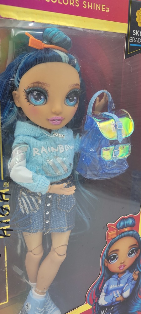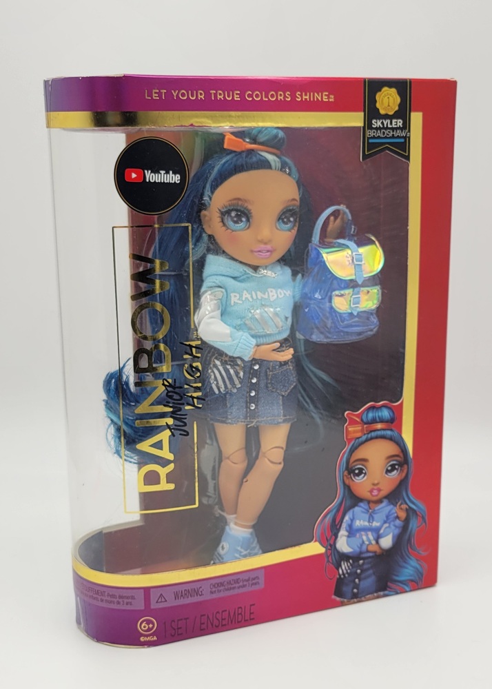 Meet Skyler Bradshaw, the radiant blue doll rocking the Rainbow High Junior High! This trendsetter comes with her stylish backpack, ready to conquer the world with her fashion-forward sense of style and delightful charm. Let your imagination soar high with Skyler, the epitome of blue-dazzle chic!