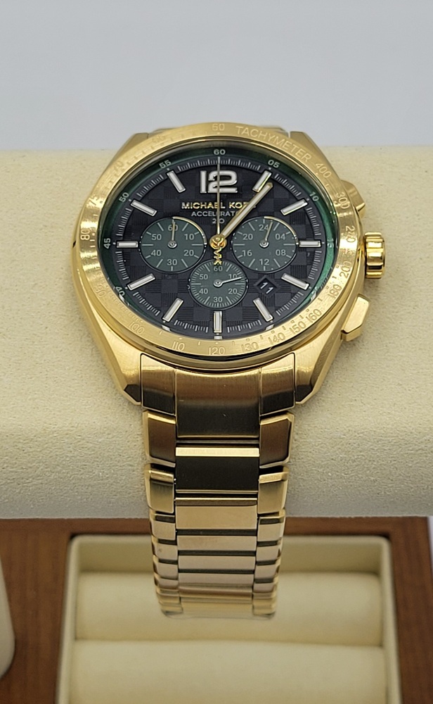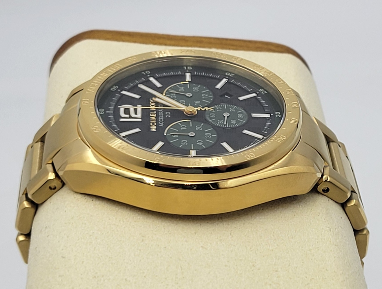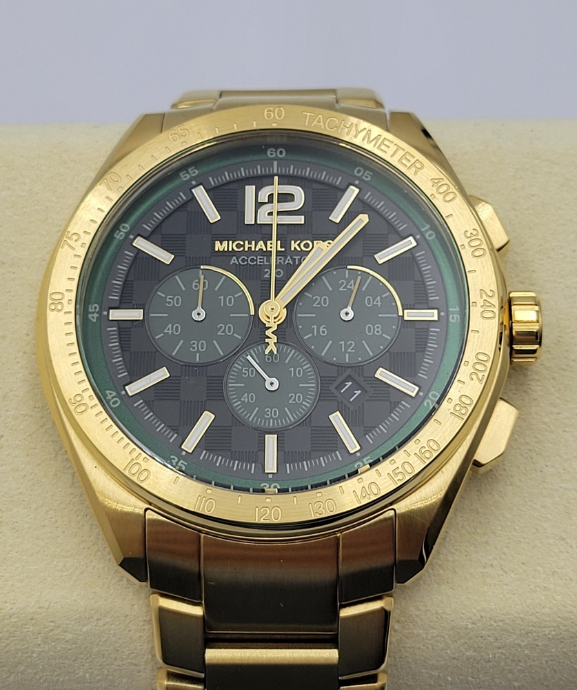 Unleash your inner Gatsby with the Michael Kors Accelerator 2.0 Chronograph. This golden marvel is an amalgamation of vintage class and modern engineering, adding a sculptural element to your wrist. Gleaming in gold-tone stainless steel, it's the timepiece that sets the distinguished man apart.