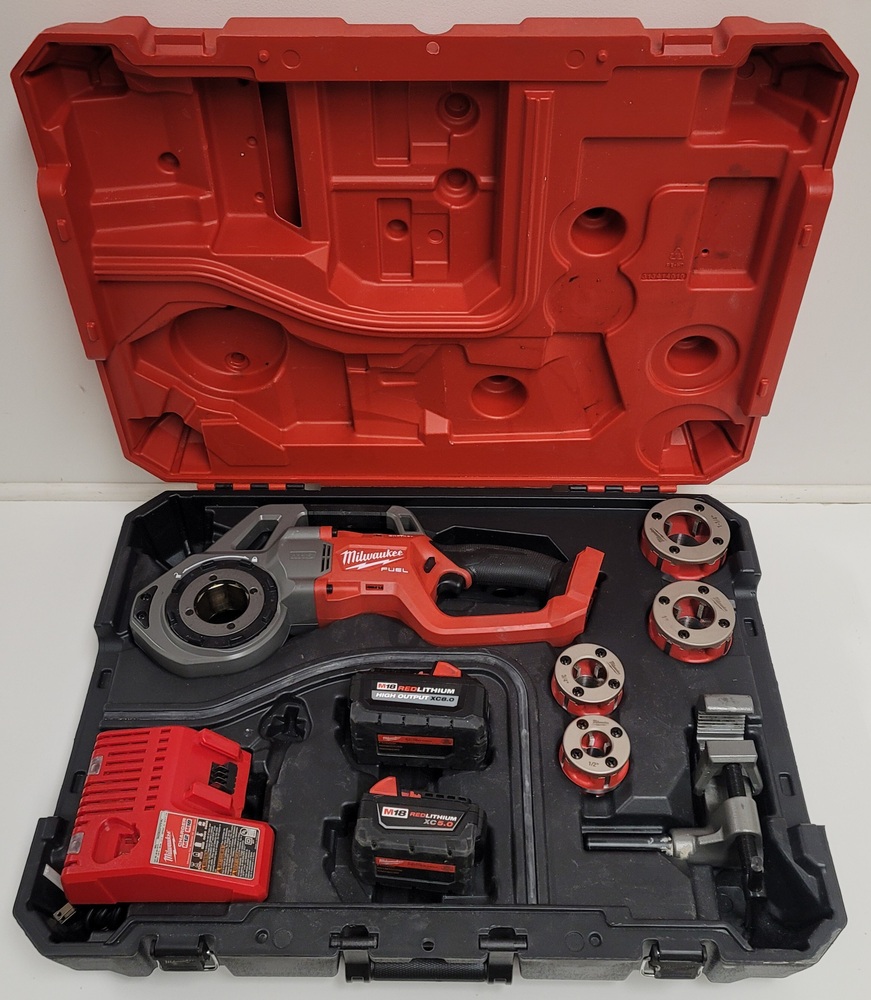 Kit Includes: (1) M18 Fuel One-Key 18V Cordless Compact Pipe Threader (2870-20), (1) M18 REDLITHIUM HO XC8.0ah Battery (48-11-1880), (1) M18 REDLITHIUM XC5.0ah Battery (48-11-1880), (1) M18/ M12 Multi-Voltage Rapid Charger (48-59-1812), (4) Compact NPT Portable Pipe Threading Forged Aluminum Die Heads- 1/2" (48-36-1307), 3/4" (48-36-1308), 1" (48-36-1309), 1-1/4" (48-36-1310), (1) Threading Support Arm