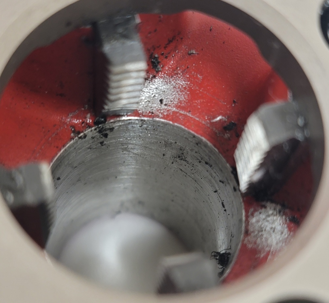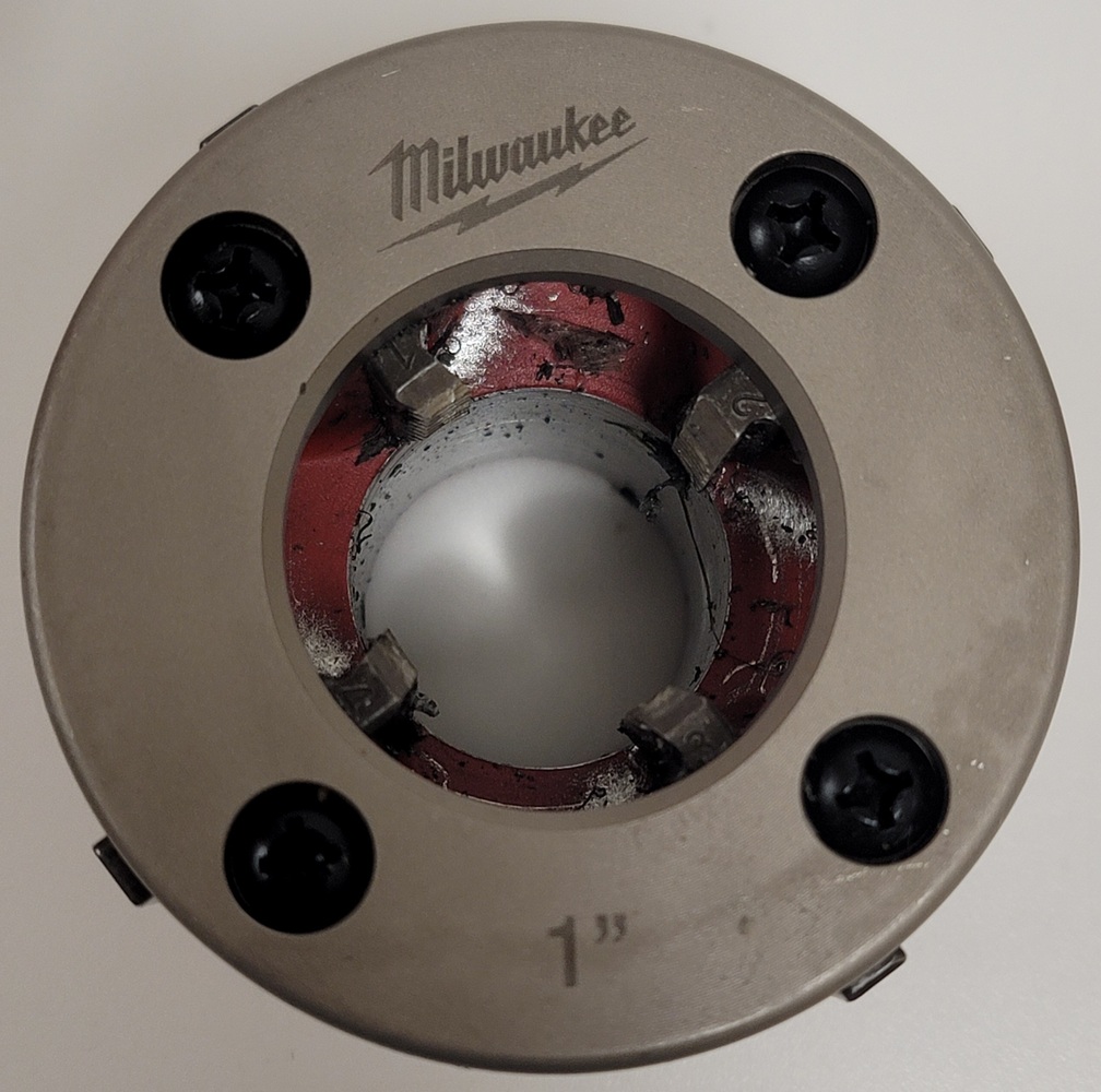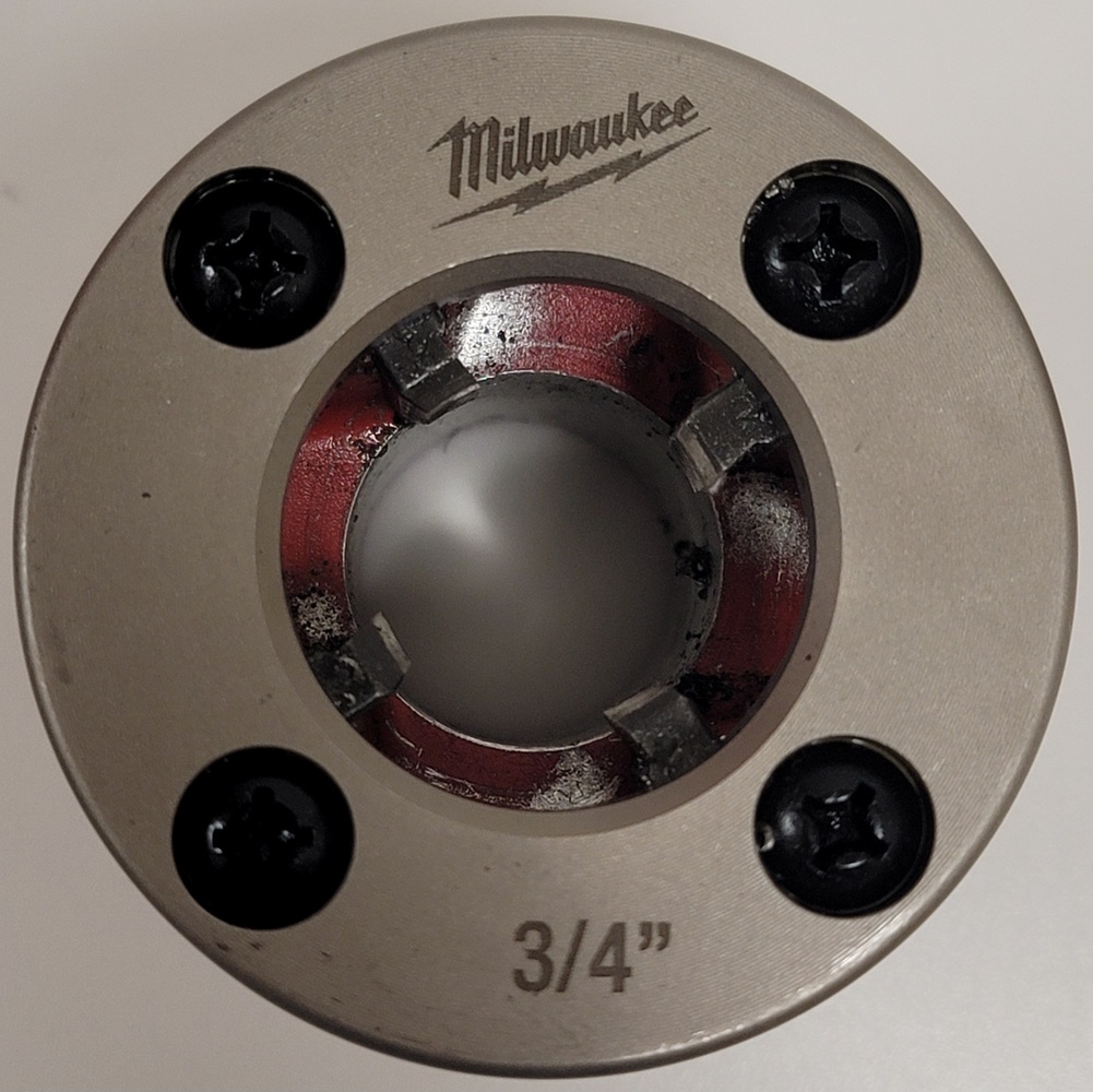 The 3/4" and 1" threading die head have been used, but the 1/2" and 1-1/4" are brand new