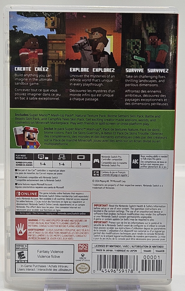 The Super Mario Mash-Up Pack for Minecraft on Nintendo Switch transforms the game with 40 Mario-themed player skins, 15 music tracks, and a custom-built Mario-themed world to explore. This exclusive Nintendo experience lets players play as iconic characters and build in a familiar, but blocky, Super Mario universe. The pack is a themed collection of textures, skins, and a world template, blending the creative freedom of Minecraft with the iconic characters and landscapes of the Super Mario franchise.