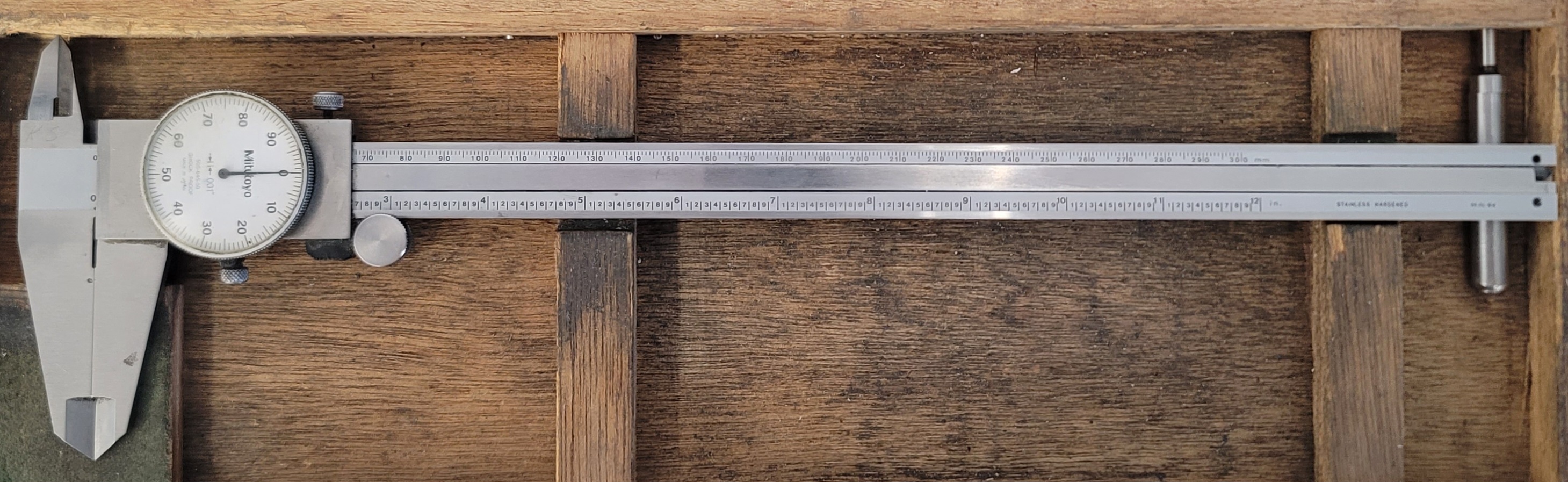 Mitutoyo 12 Inch (300mm) Analog Dial Caliper in Wooden Case (505-645-50) | Avenue Shop Swap & Sell