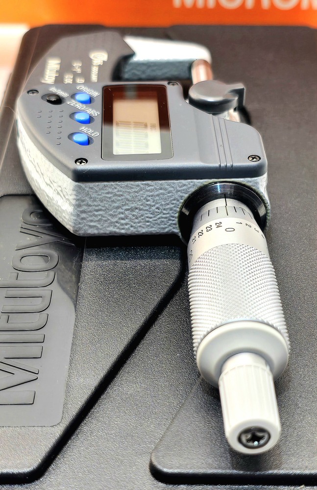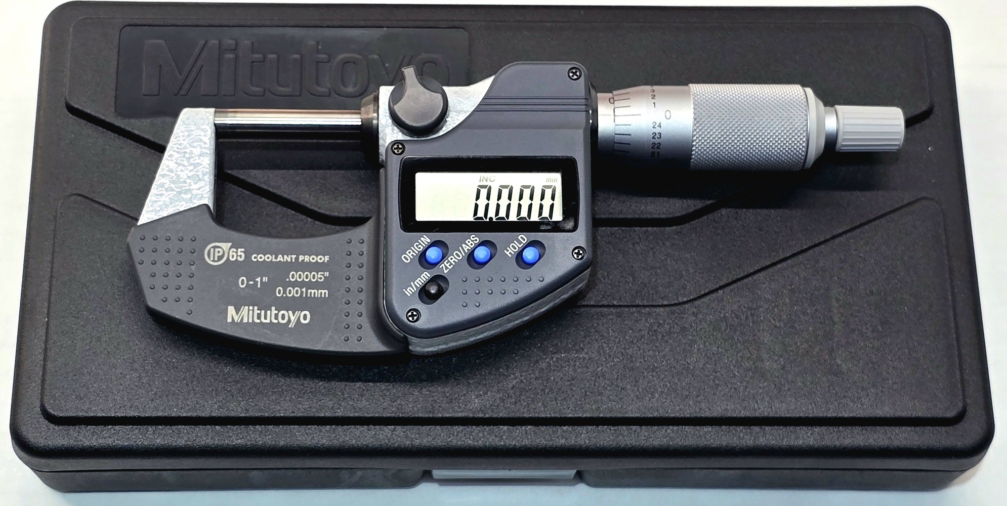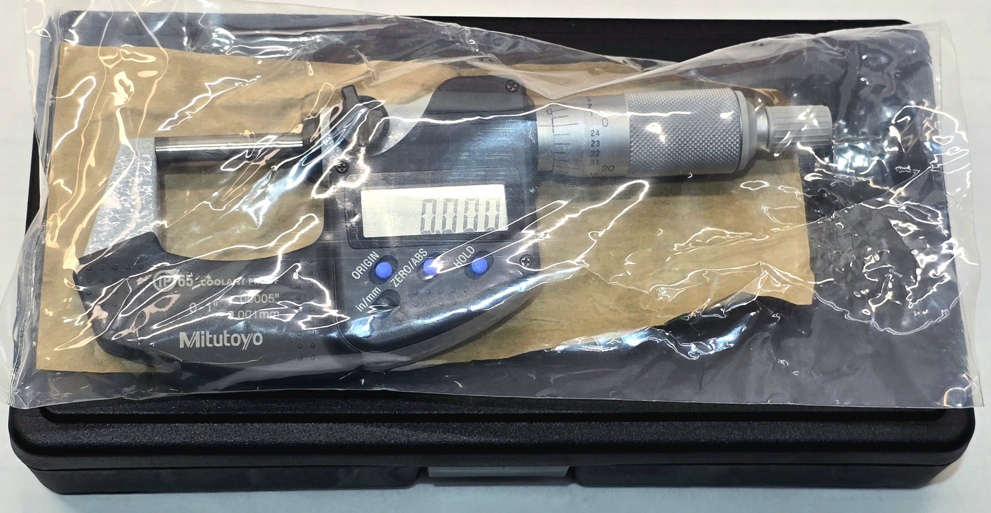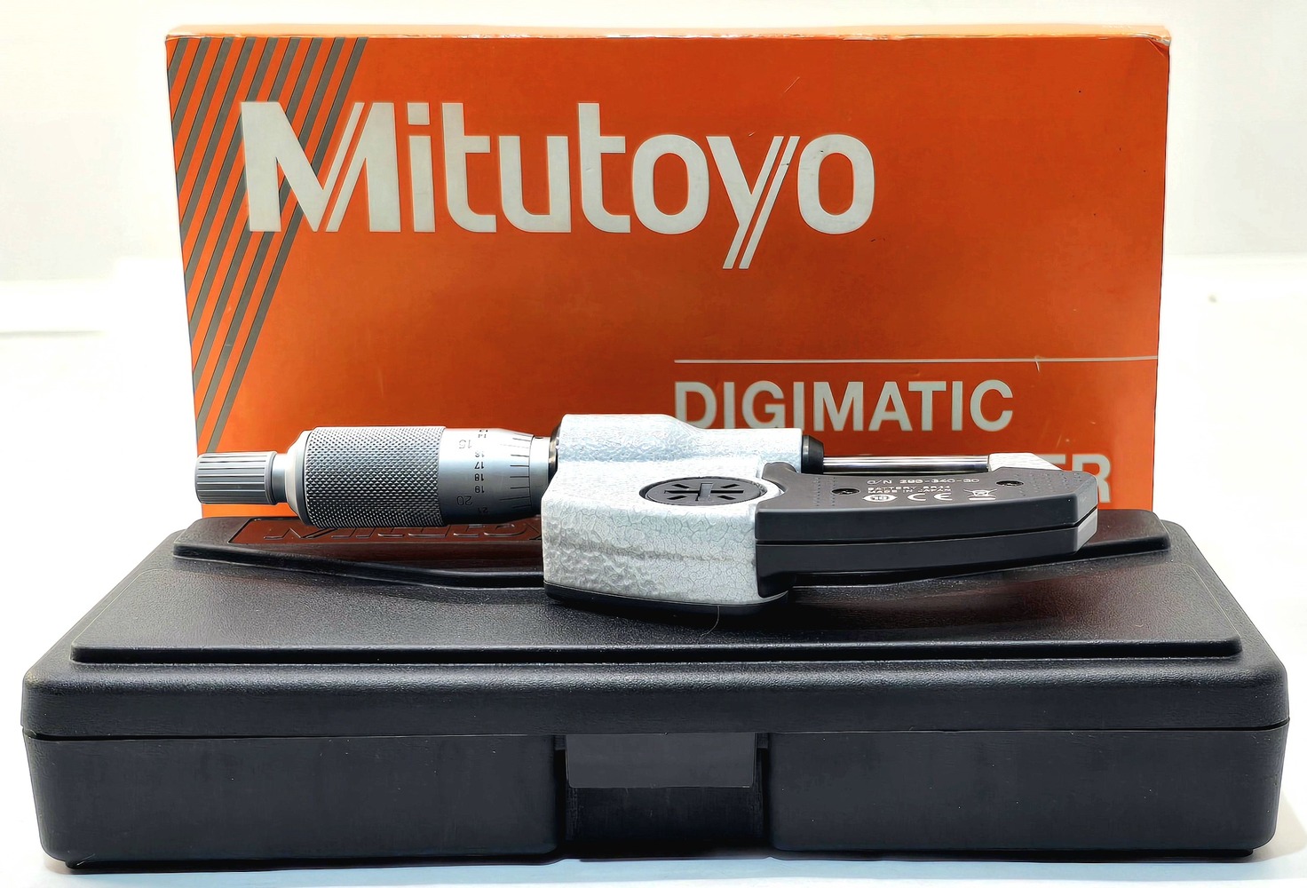 Micrometer Condition: preowned, unused, open box condition. Micrometer was removed from sealed shipping bag and battery installed for testing and photos only. Micrometer Appearance: as new with no notable flaws. What's Included: Mitutoyo 293-340-30 Digimatic micrometer, battery, spanner, documentation, case, outer cardboard sleeve.