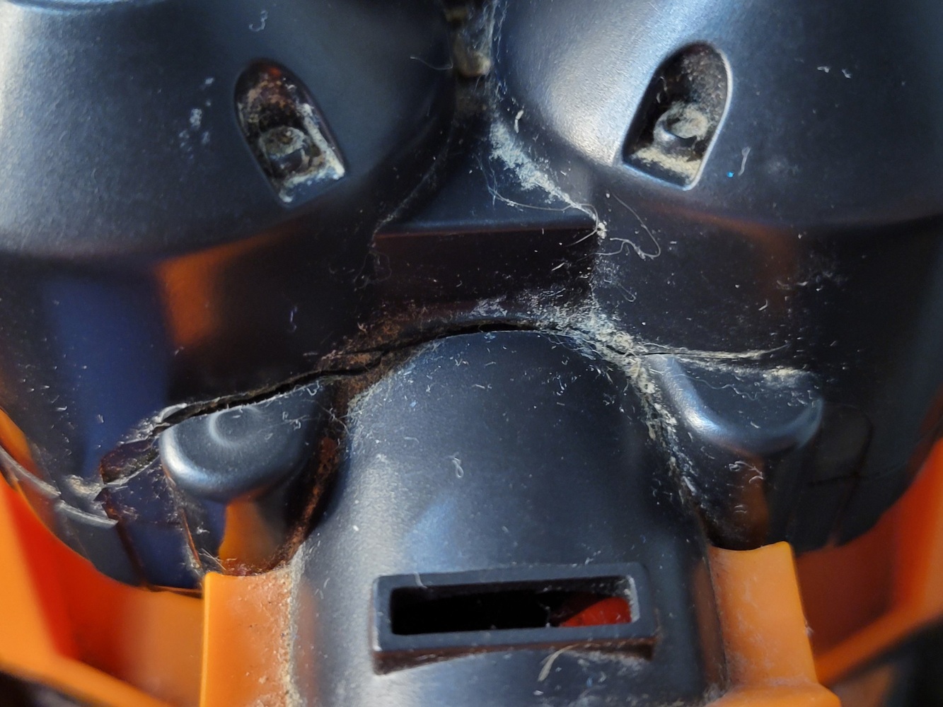 There is a crack on the plastic of the cannon. Please see photos. The backing for the remote control is missing.
