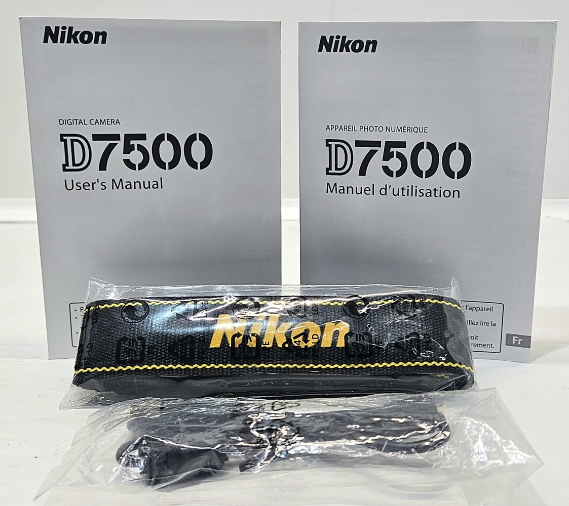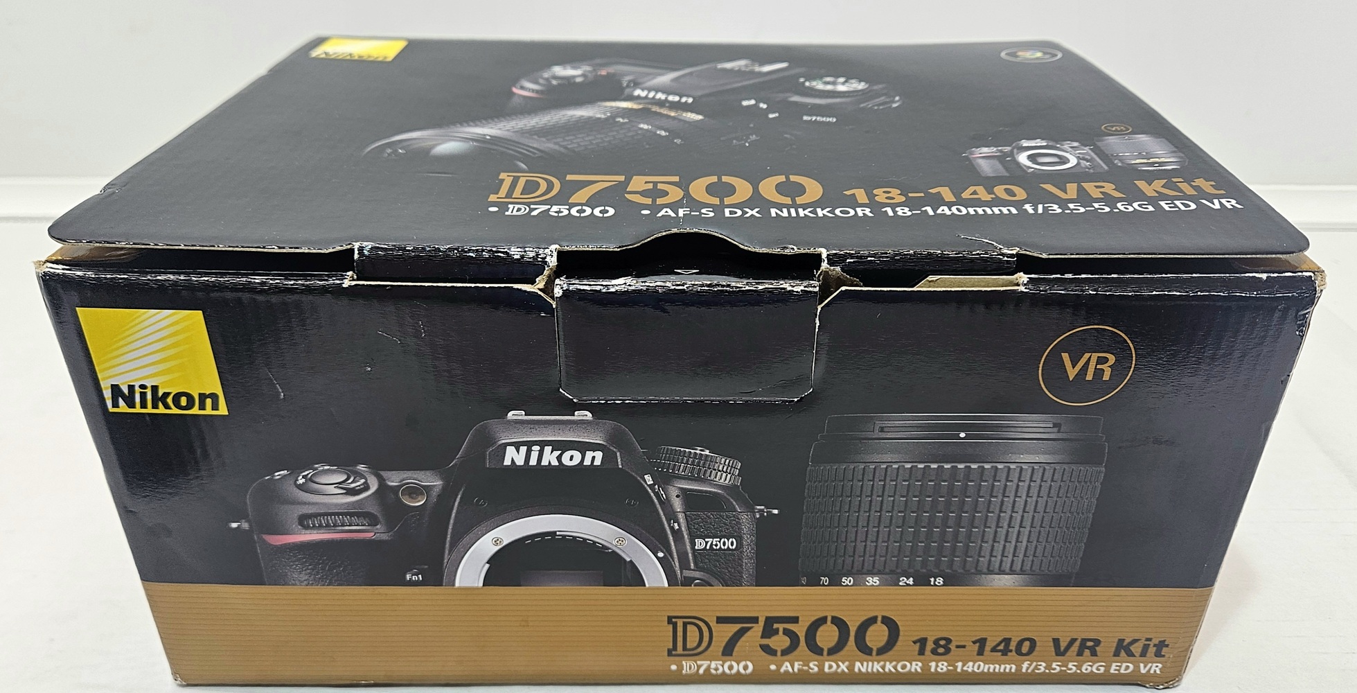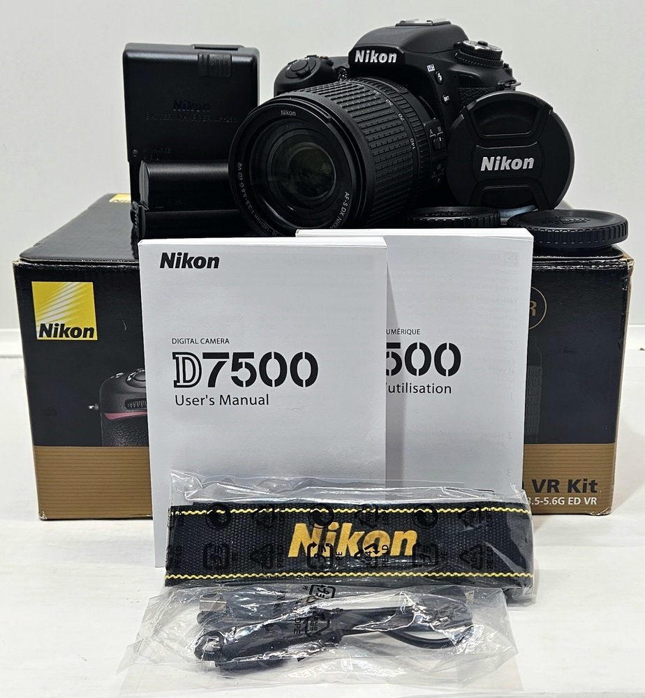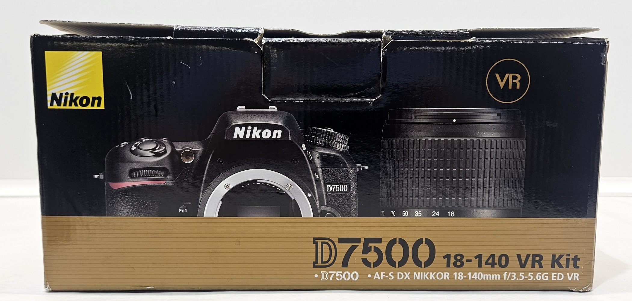 Included: Nikon D7500 DSLR camera, 18-140mm ED VR lens, Nikon MH-25a battery charger, Nikon EN-EL15C li-ion battery, Nikon-branded neck strap, 1x microUSB, user manuals
