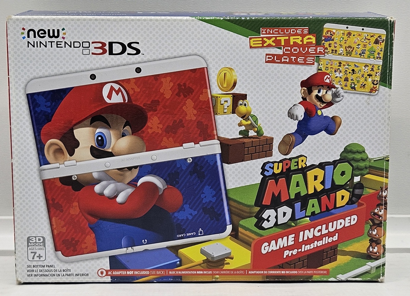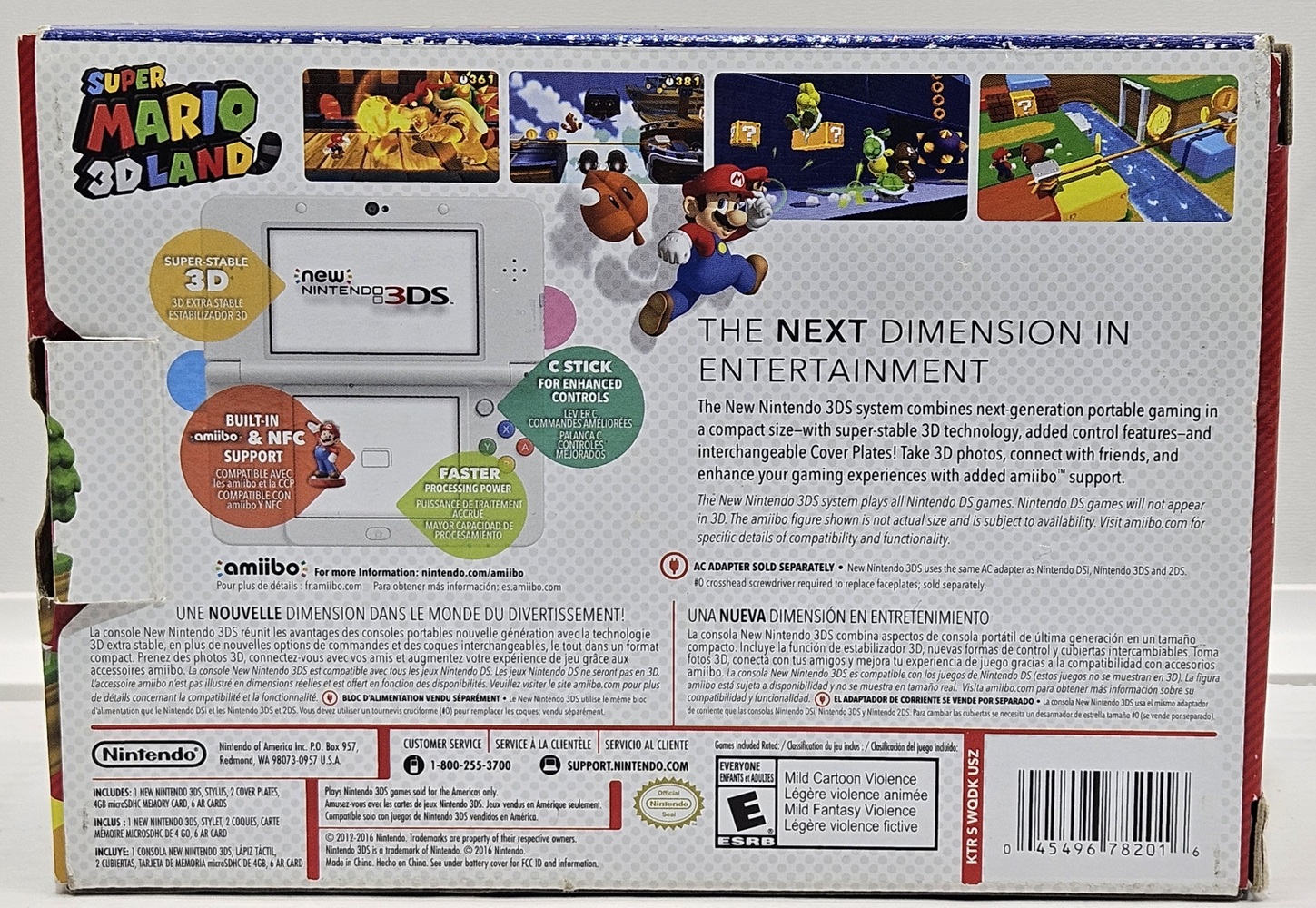 Experience the enhanced world of gaming with the New Nintendo 3DS Super Mario 3D Land Edition. This sleek white handheld system comes with charger, box, Mario face plates, a rechargeable battery and manual, ensuring you have everything you need to dive straight into your favorite adventures. The device is designed for the NTSC-U/C (US/Canada) region, making it perfect for gamers within these areas.