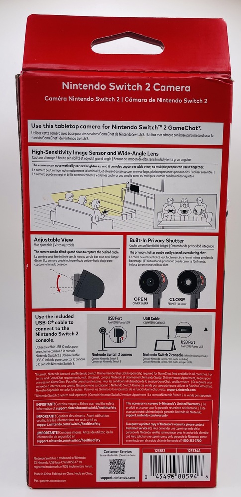 Capture your gaming moments with the Nintendo Switch 2 USB-C camera. Equipped to work in TV mode, Tabletop mode, or Handheld mode, this camera allows for video chats via the GameChat feature. Simply plug into your Nintendo Switch 2's USB-C port to connect with friends and create memorable gaming experiences.