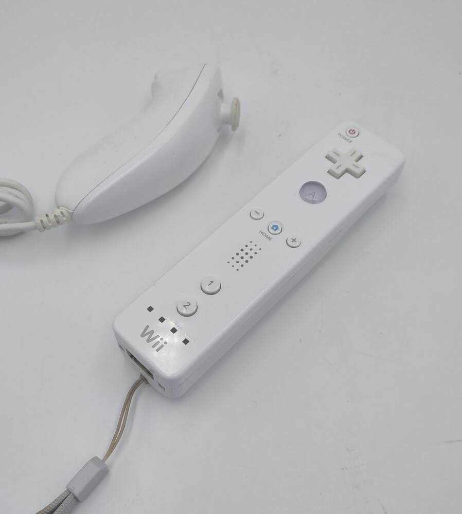 Console has GameCube ports, comes with the power and AV cords, sensor bar, white controller and Nunchuk, and Wii Sports Resort game.