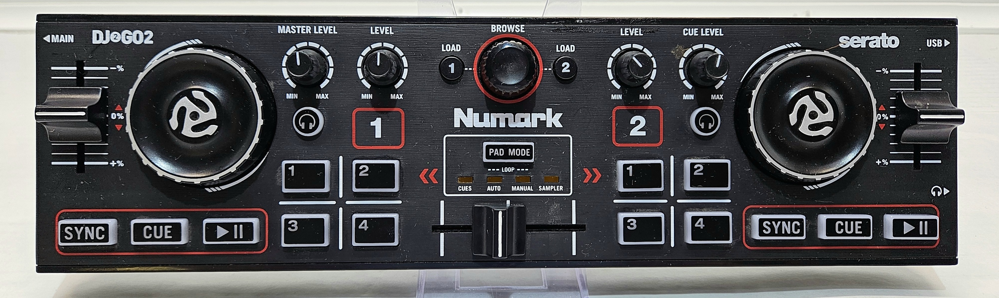 The Numark DJ2GO2 DJ Controller is a top-quality, compact, portable DJ controller perfect for on-the-go sets. It features a built-in sound card, a responsive jog wheel, hot cue pads, a headphone output, and Serato DJ software integration. The controller does have MIDI mapping for use with other popular DJ software.