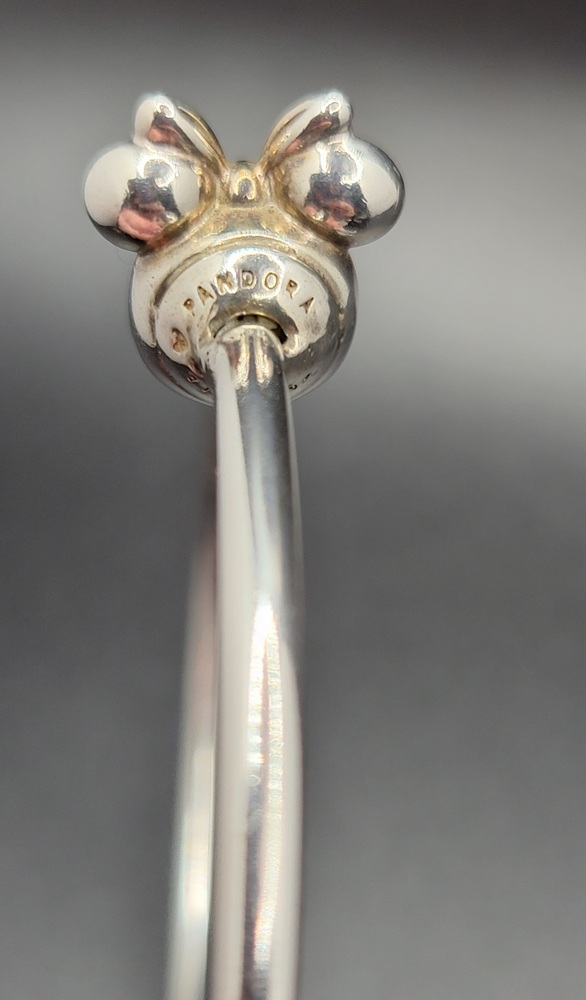 This listing includes, the open bangle bracelet,two Pandora brand spacers and one Pandora brand Mickey & Minnie heart charm.