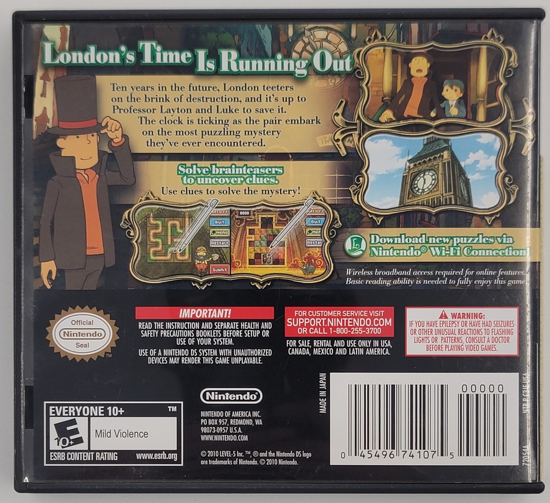 Ten years in the future, London' teeters on the brink of destruction, and it's up to Professor Layton and Luke to save it. The clock is ticking as the pair embark on the most puzzling mystery they've ever encountered.
