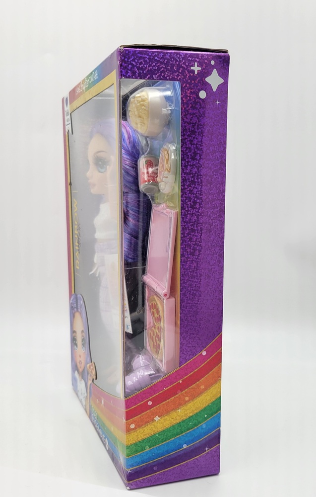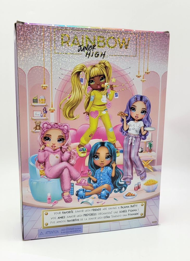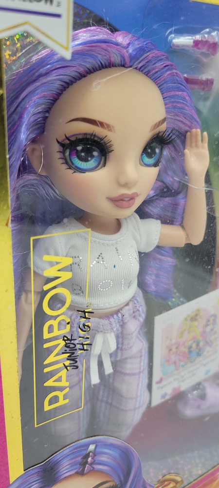 Introducing the 9" Violet Willow Posable Doll from Rainbow High Jr. High P.J. Party: a quirky delight wrapped in shades of purple. Enchanting, with an array of stylish sleepwear, she brings mystery and charm to playtime. This pint-sized wonder, limited-edition collectible, boasts a posable design and endless whimsy. Enter a world of colour & creativity!