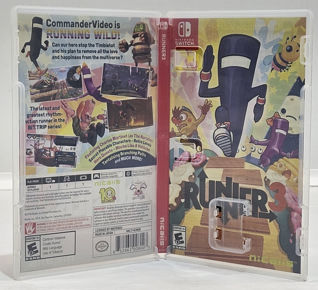 Runner3 is a rhythm platform game in which players take control of CommanderVideo, the protagonist of the Bit. Trip series. Similar to the previous two Runner games, CommanderVideo runs forward automatically and the player controls actions such as jumping, sliding, and kicking to overcome obstacles and collect items.