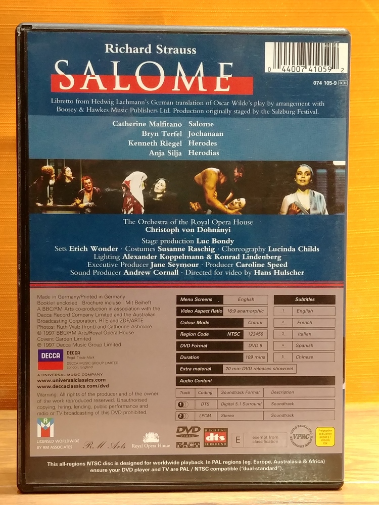 This preowned copy of Salome is in lovely, gently used condition. The disc is in very clean condition, the case shows little to no wear and the printed material is in fine shape with a bit of edgewear to the booklet. Please view all pictures as they are part of the description and ask any questions before buying. We are accurate as possible when listing to avoid any disappointment and are happy to provide any additional images or information requested.