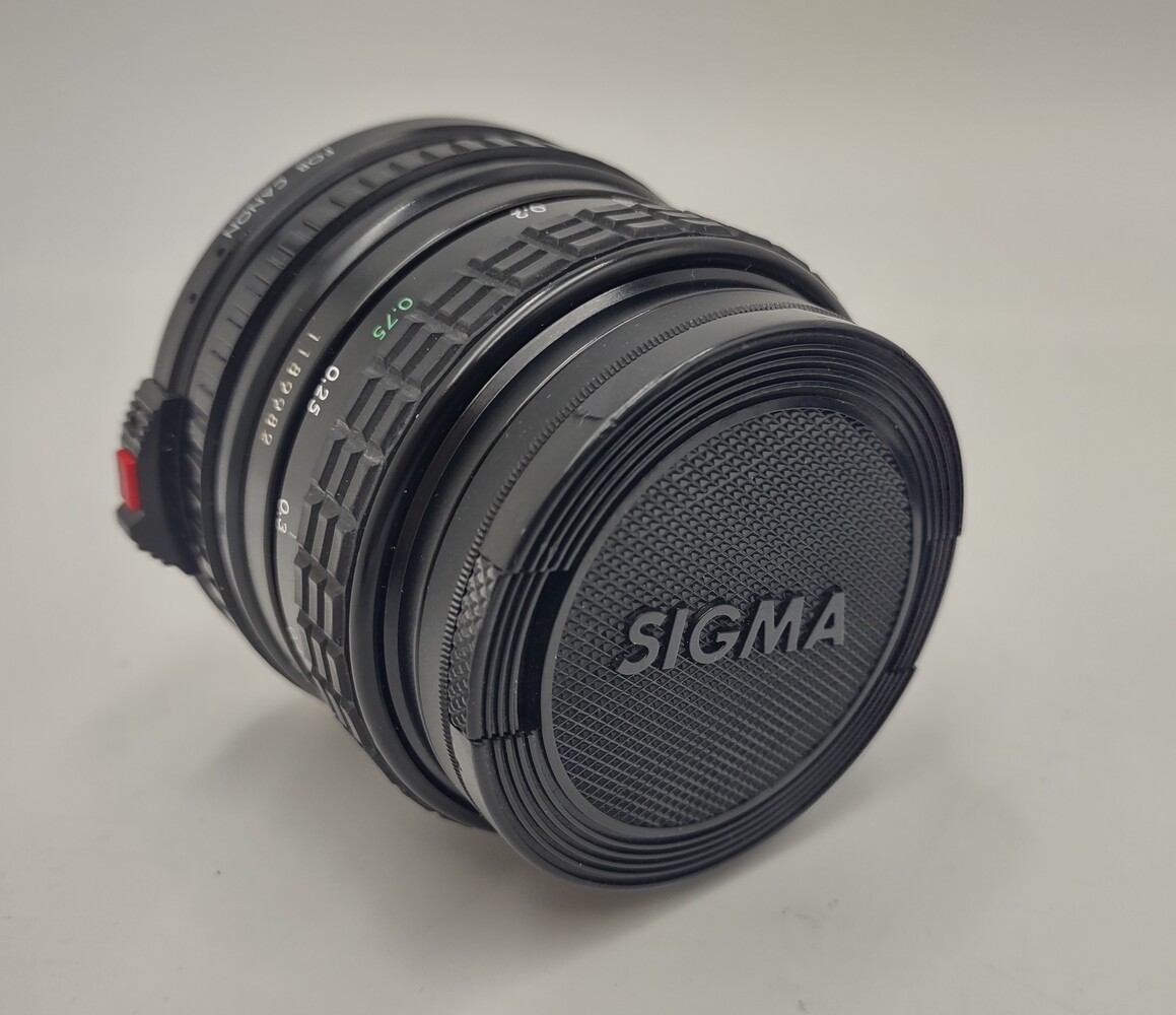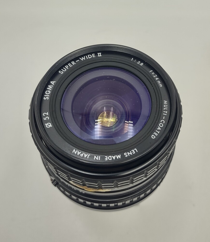 Sigma Super-Wide II Lens, 1:26 f=24mm, with perfect hood and UV filter, Canon mount. Enhances photography with precision and clarity. Comes with carrying case!
