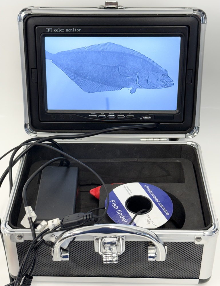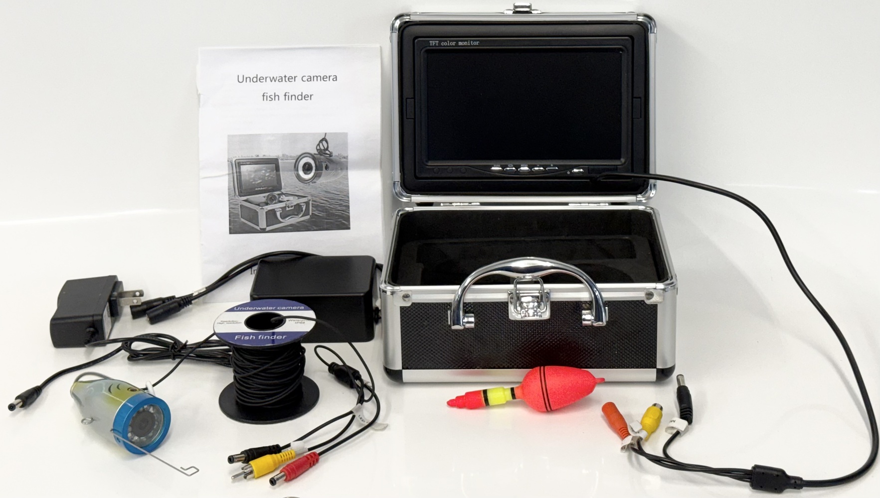 This listing includes the camera, display, float, power cord, AV cord, charger, manual, and storage case.