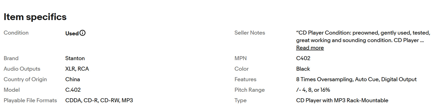 What's Included: Stanton C.402 CD player and power cord. No manual, remote or accessories included.
