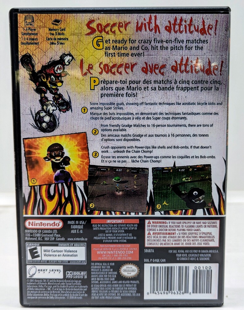 Super Mario Strikers is a fast-paced soccer game for GameCube, featuring iconic Nintendo characters. Its unique style combines traditional soccer with wild power-ups and items, providing both single-player and multiplayer modes. Added tactics like body checks add excitement and depth to gameplay. Players must strategically score goals to win matches.