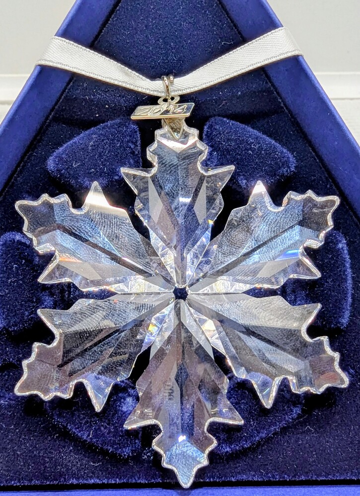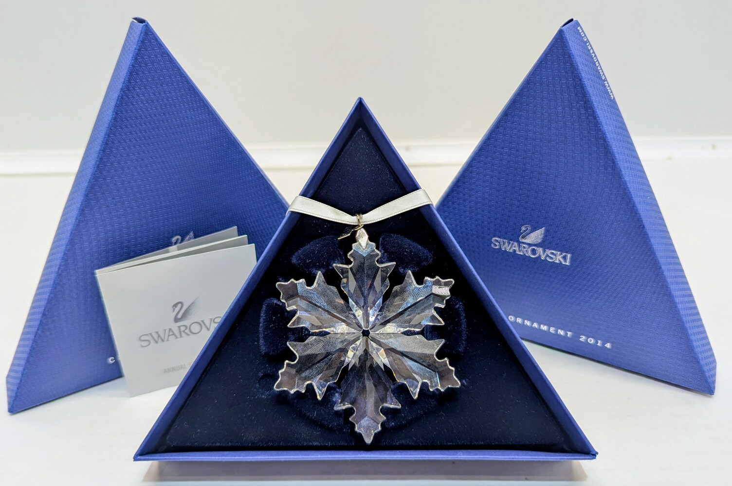 Celebrate the holidays with the 2014 limited edition Swarovski ornament. This hand-crafted spectacle brings brilliance and precision, illuminating your tree into a prism of dancing light.